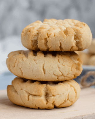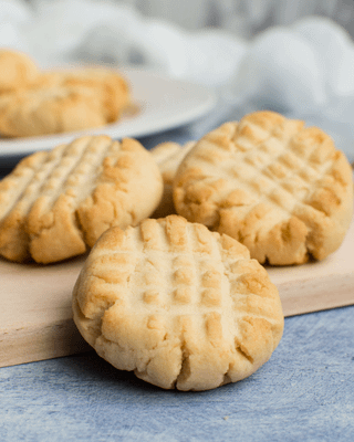 1. Gather your ingredients in place and measure them out using your measuring cups and spoons. 2. Next, preheat your oven to 350F and line a baking sheet with parchment paper. 3. In a mixing bowl, combine almond flour *(I used this superfine one)* and powdered Monk fruit sweetener with Erythritol and mix well. Then add in the butter and vanilla extract and work it with your fingers for a few minutes. 4. Next shape the dough into nine equal balls and place your baking sheet lined with parchment paper. 5. Make sure to place the balls 2-inches apart. Also press each bowl with a fork to flatten and create a crisscross pattern. 6. Bake the cookies for 10 minutes in your preheated oven. 7. Once the low carb butter cookies have baked for 10 minutes, take them out of the oven and cool the cookies on a wire rack for 20 minutes. Once they’re cool, you can serve.