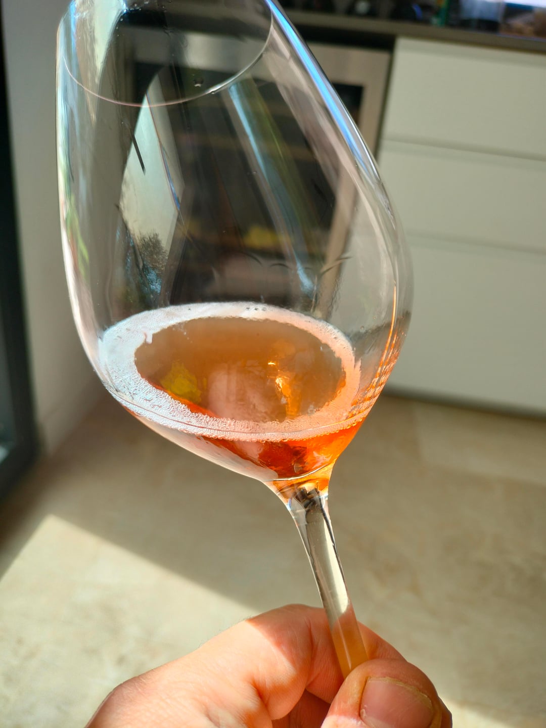 It showcases the typical long ageing notes, but the red fruits are so faint that blind tasted would be hard to tell this is a rosé. Mostly toasted bread and brioche, honey and white fruits jam. When just poured, hints of pyrazines are more noticeable, but moments later they disapear.
