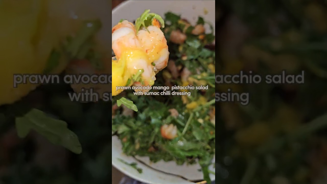 Ingredients: 500g cooked tiger prawns (deveined), 1 mango (2cm cubes), 1 avocado (2cm cubes), 2 limes, 1/3 cup coriander (chopped), 1 red chili (finely chopped) or chili flakes, 2 tbsp honey, 1 tbsp avocado oil, butter lettuce or rocket, toasted pistachios, micro herbs