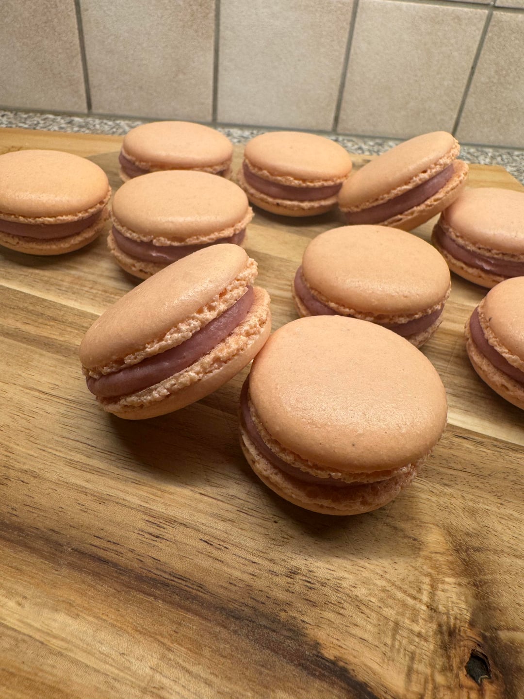 After my first attempt failed, it tried a plain batch, not 100% there yet. But not bad either. The filling is raspberry/white chocolate ganache. It’s very satifying when they come together 😁