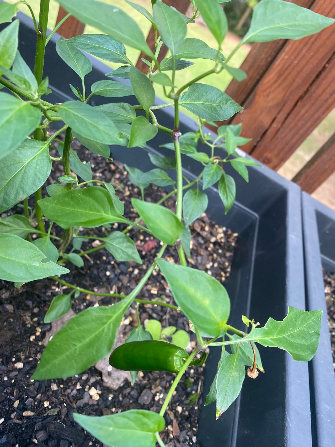 Can anyone tell me what pepper plant this is? We bought 3 plants in spring, all labeled jalapeño. Two are definitely jalapeños but this is not. It’s a smaller plant overall with darker green leaves that are smaller than jalapeño. The peppers turn red (although these are still green) and they are about as hot as a jalapeño. When cut open, they are tightly packed with ribs and seeds. I noticed that this pepper is not as crunchy as most other peppers but that may have been due to watering- or lack of water.