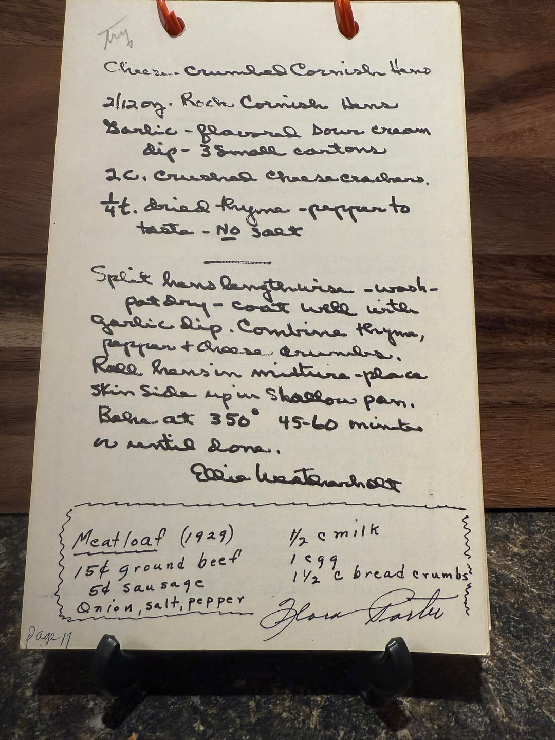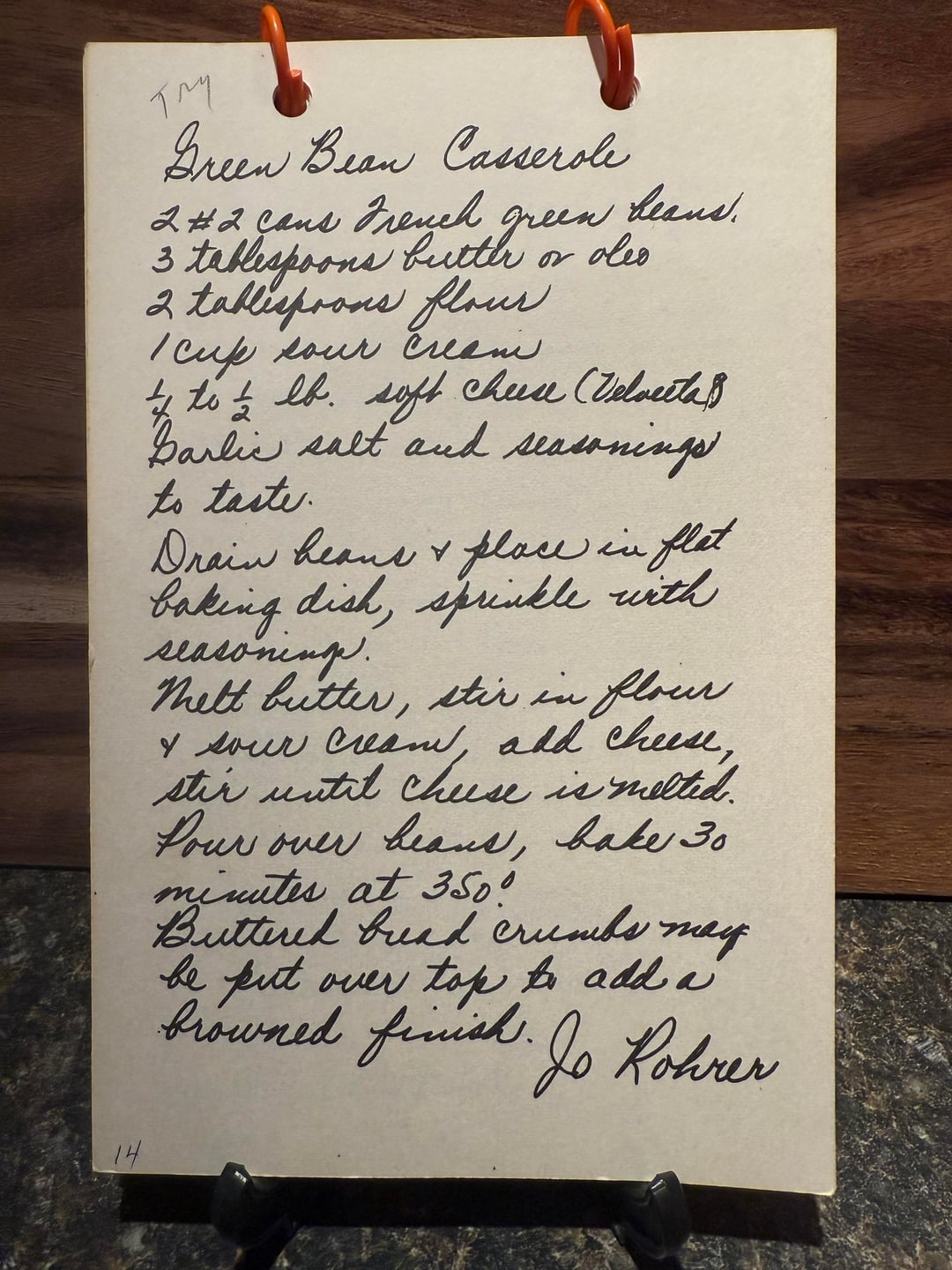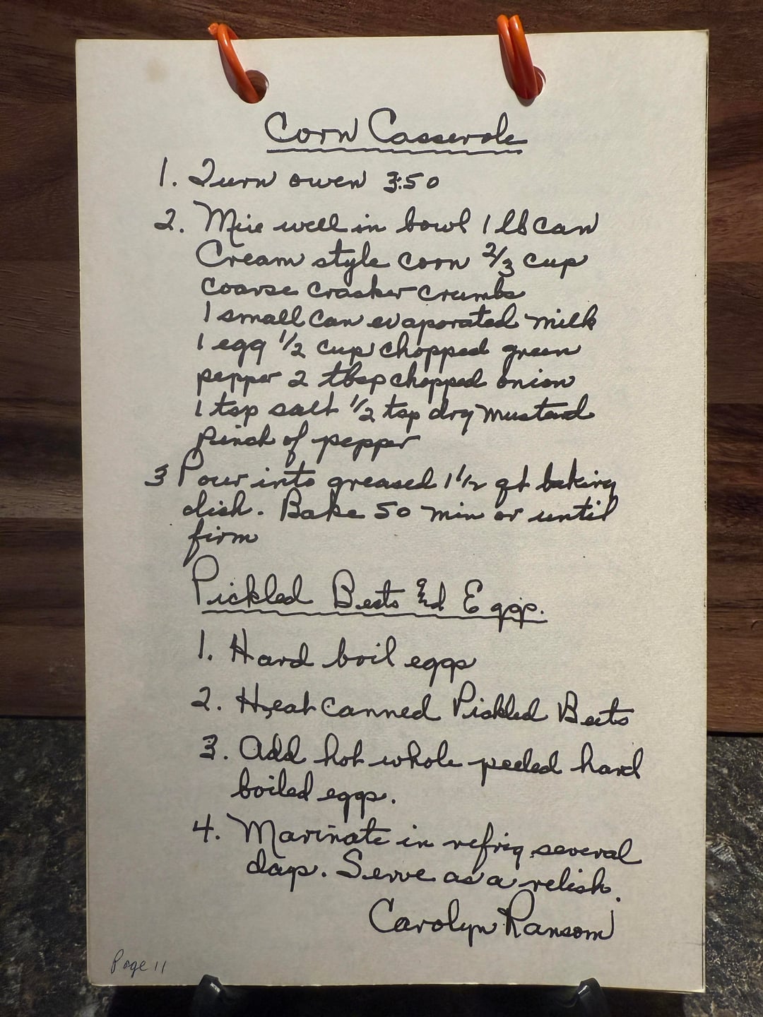 2. Mix well in bowl 1 lb can cream style corn ⅔ cup coarse cracker crumbs 1 small can evaporated milk 1 egg ½ cup chopped green pepper 2 tbsp chopped onion 1 tsp salt ½ tsp dry mustard pinch of pepper