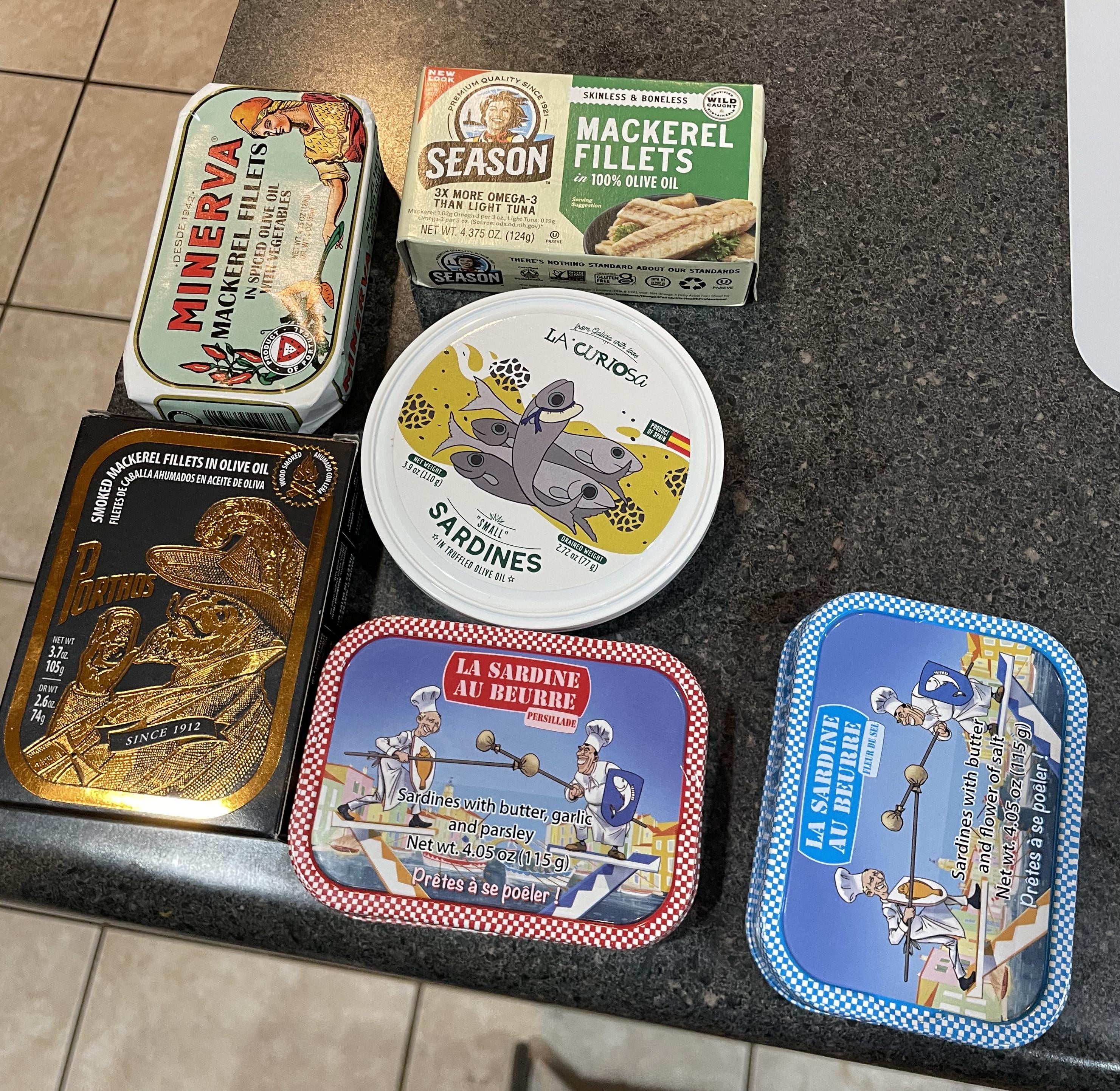 Oh, nice. The “with butter” ones I’ve tried the one without parsley. It’s good but you’ll need to melt the butter via whatever means (easiest is just to stick the tin in hot water for a couple minutes) and probably have something to go with it (I just dump it over rice). I like the minerva, that one I just eat out of the tin. Porthos I don’t think I’ve had that specific one but the brand is nice enough. I don’t know the round one in the middle but it’s probably good.