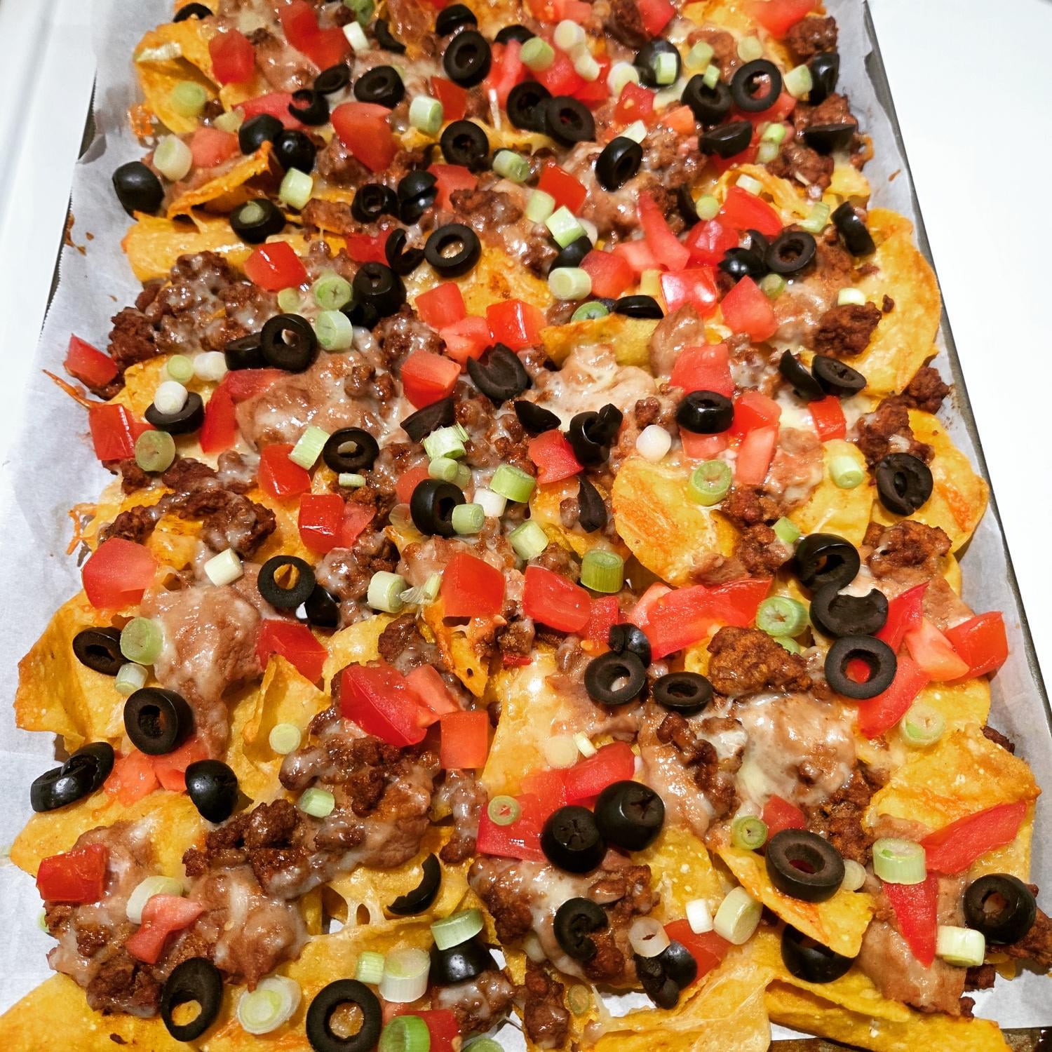 equal_poop 3 weeks ago Frig, I love those black olives, tomatoes, green onions, and tomatoes. What kind of cheese did you use? I love nachos