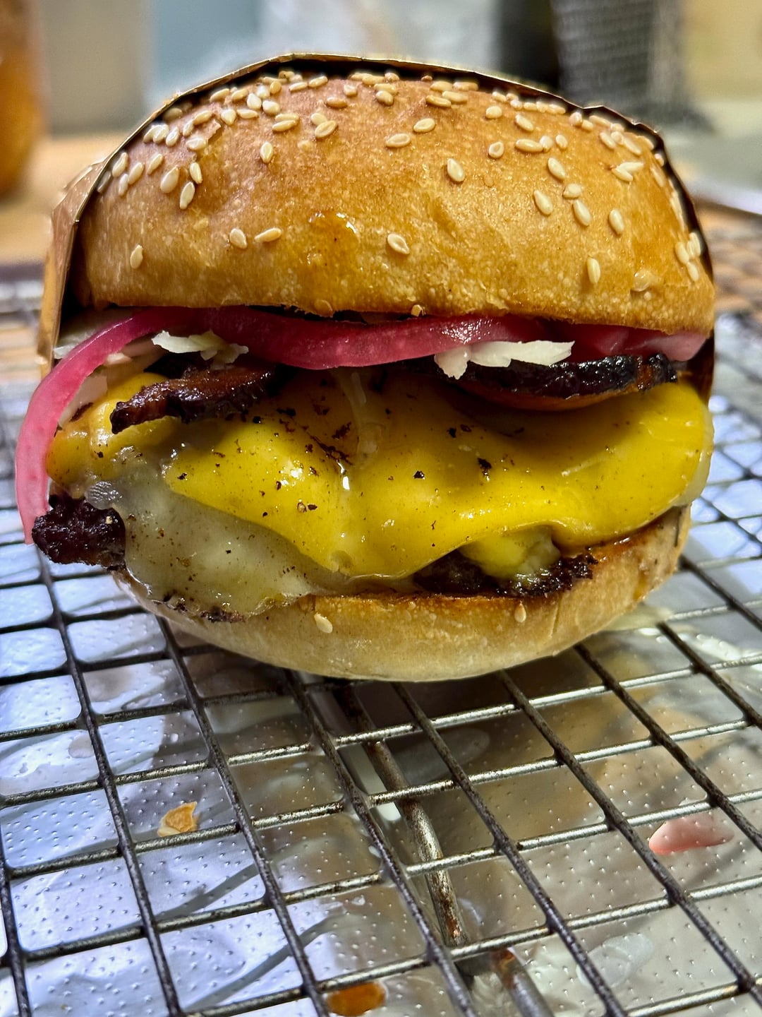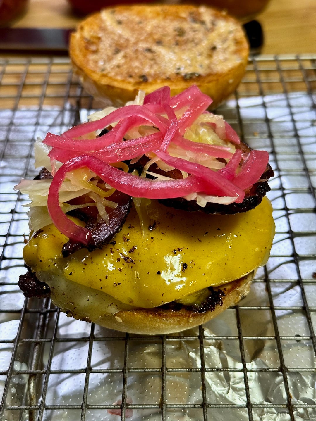 1/3lb slight-smash with Pepper Jack, American, Black Forest bacon, Jamaican jerk mayo, fresh kraut, pickled red onions.by daversa 2 Comments Vacation-fun777 2 months ago Looks delicious 😋 Zealousideal_Group69 2 months ago Yumm