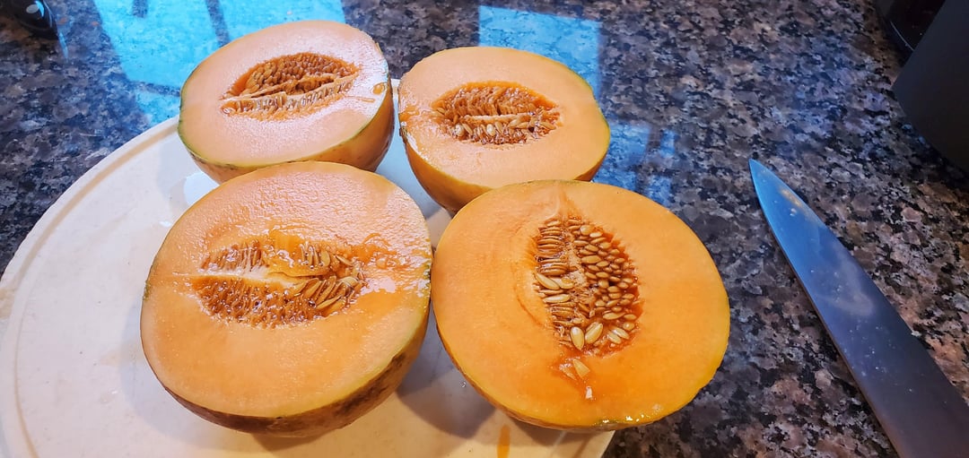 You will not find many charentais melons at the produce stand, they're just not very attractive, but when you look inside, you find deliciousness. Once you try it, you will never grow another cantaloupe variety again, they will all be disappointing