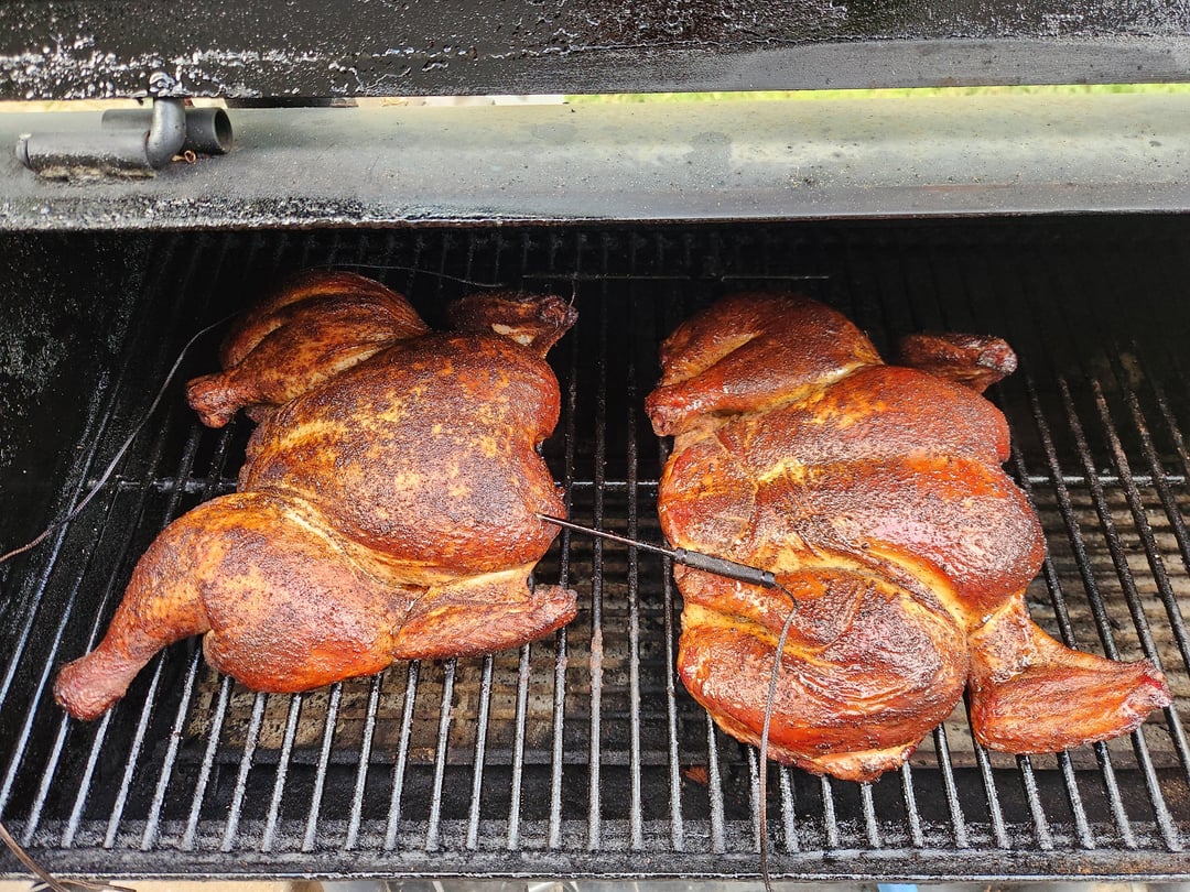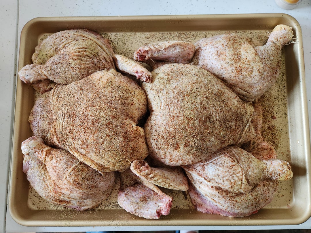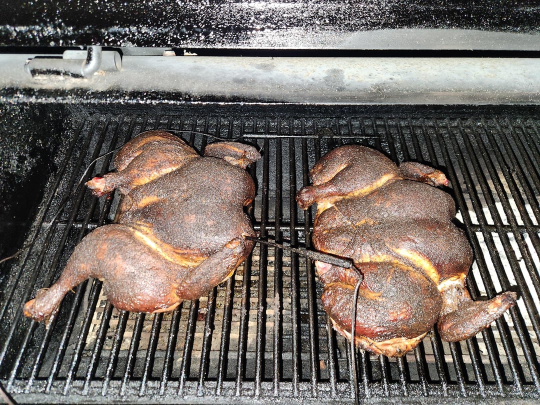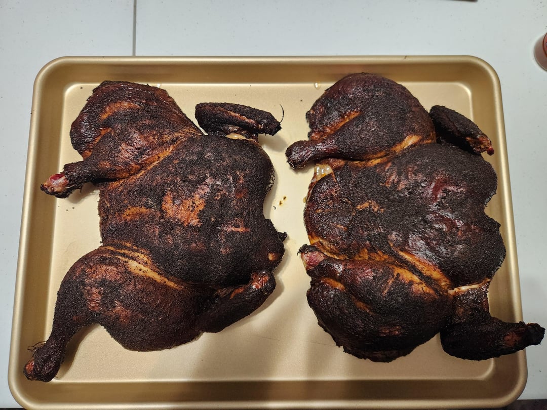 1. Niiiice. Skin looks delicious. Always spatchcock mine for grilling, cooks nice and even 👍