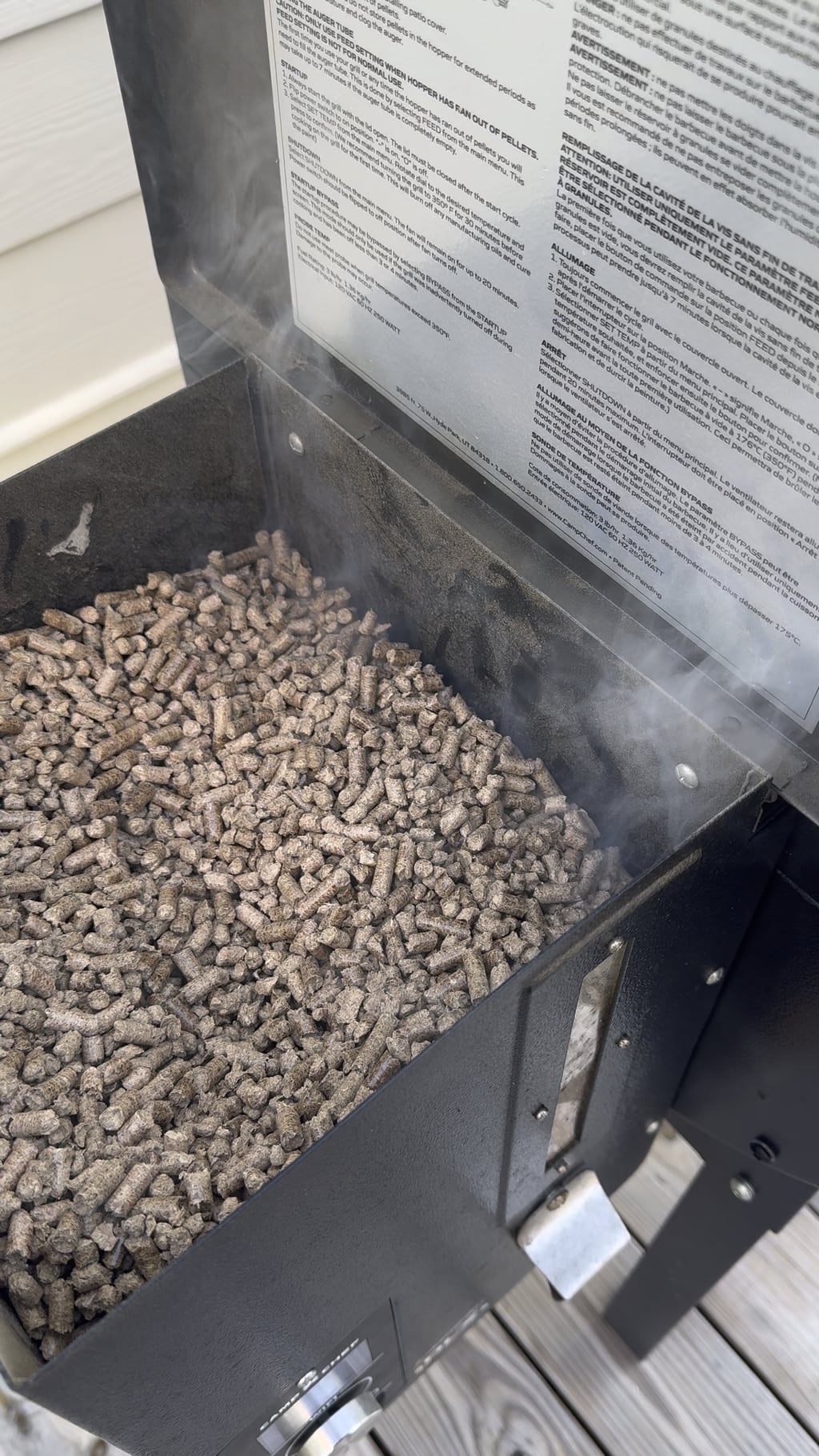 I noticed my pellets INSIDE the hooper closest to the chamber were starting to smoke. This video was when it was about 375 inside on the way up to 425 for some wings.