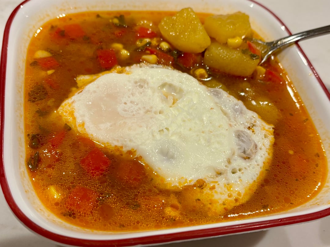 🥔 Dinner: [Spanish corn and potato soup](https://spainonafork.com/spanish-corn-potato-soup-caldo-de-millo-recipe/) by Spain on a Fork (~8 servings) —Doubled the recipe and added over easy eggs each night. Pretty good recipe, but felt like it was missing some acidity, so added lemon as well.