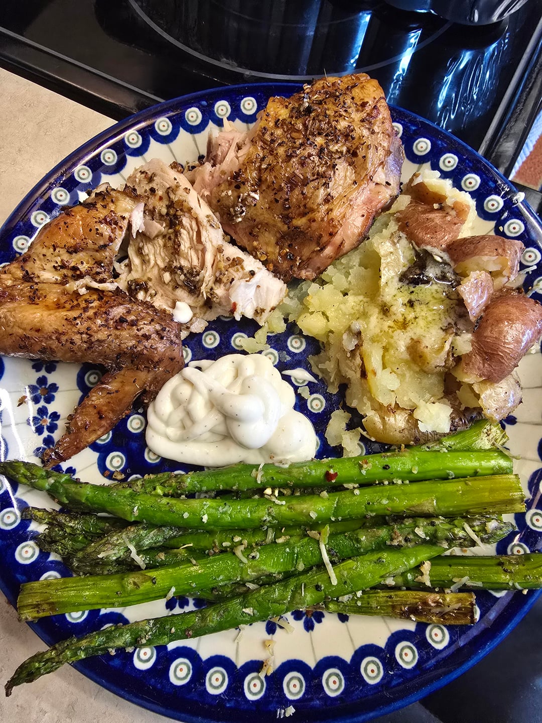 Cooked at 450 dome temp for about an hour to 163 rested and it spiked at 167. Was an amazing bird but id like the skin a little crisper. Dry brined for about 14 hours maybe try a full 24 next time? Or get the temp up a little higher?