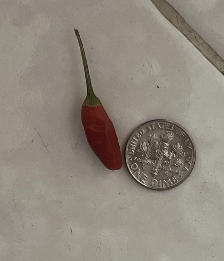 My friend has a small plant that has grown through a crack in his stone on the side of his house. The peppers are falling off, tell me it’s ripe, they start green and finish looking like this. I would consider them medium but I feel like the general public would call them very spicy.
