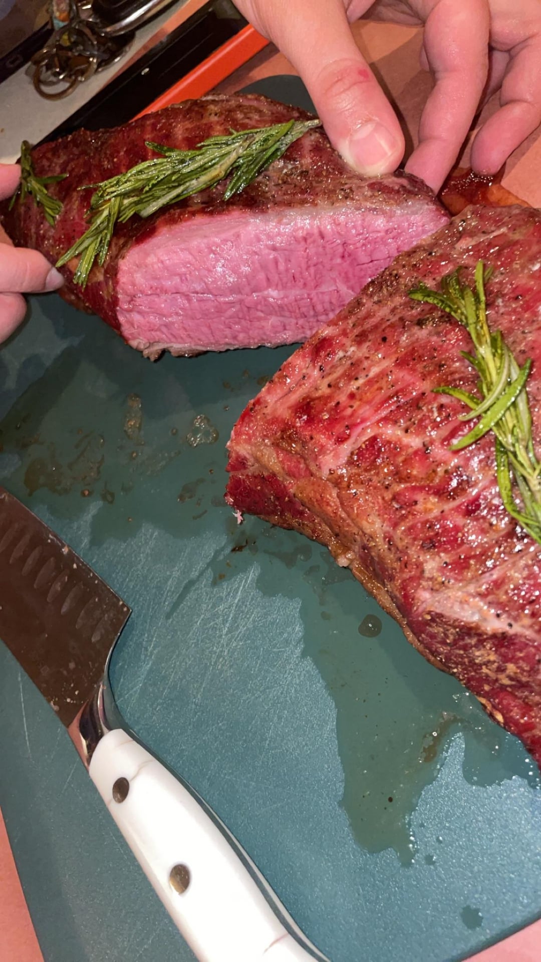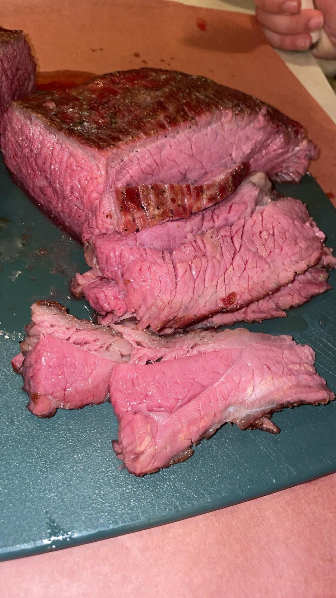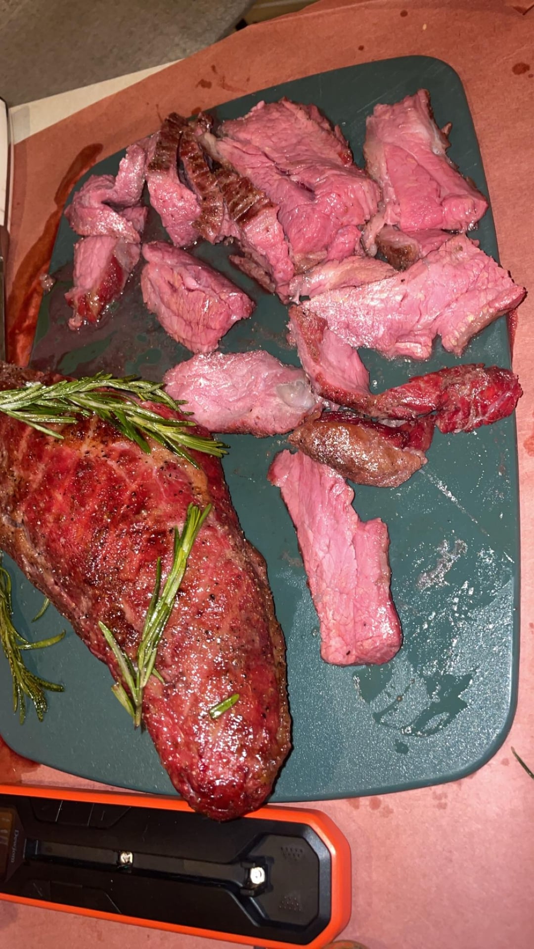 Look good but id like more of a crust on the outside of mine. That’s why I just grill tri-tip like every other dude on the west coast. Flip and rotate every 5 mins for 25-30 mins and it’s perfect every time