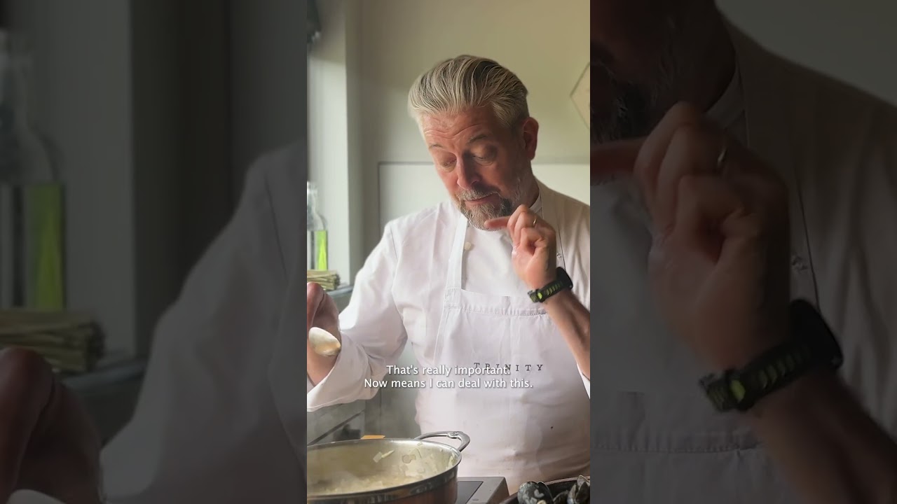 I'm sat here in my whites after a hard day, drinking a nice cool glass of Fiano, watching this man cook.