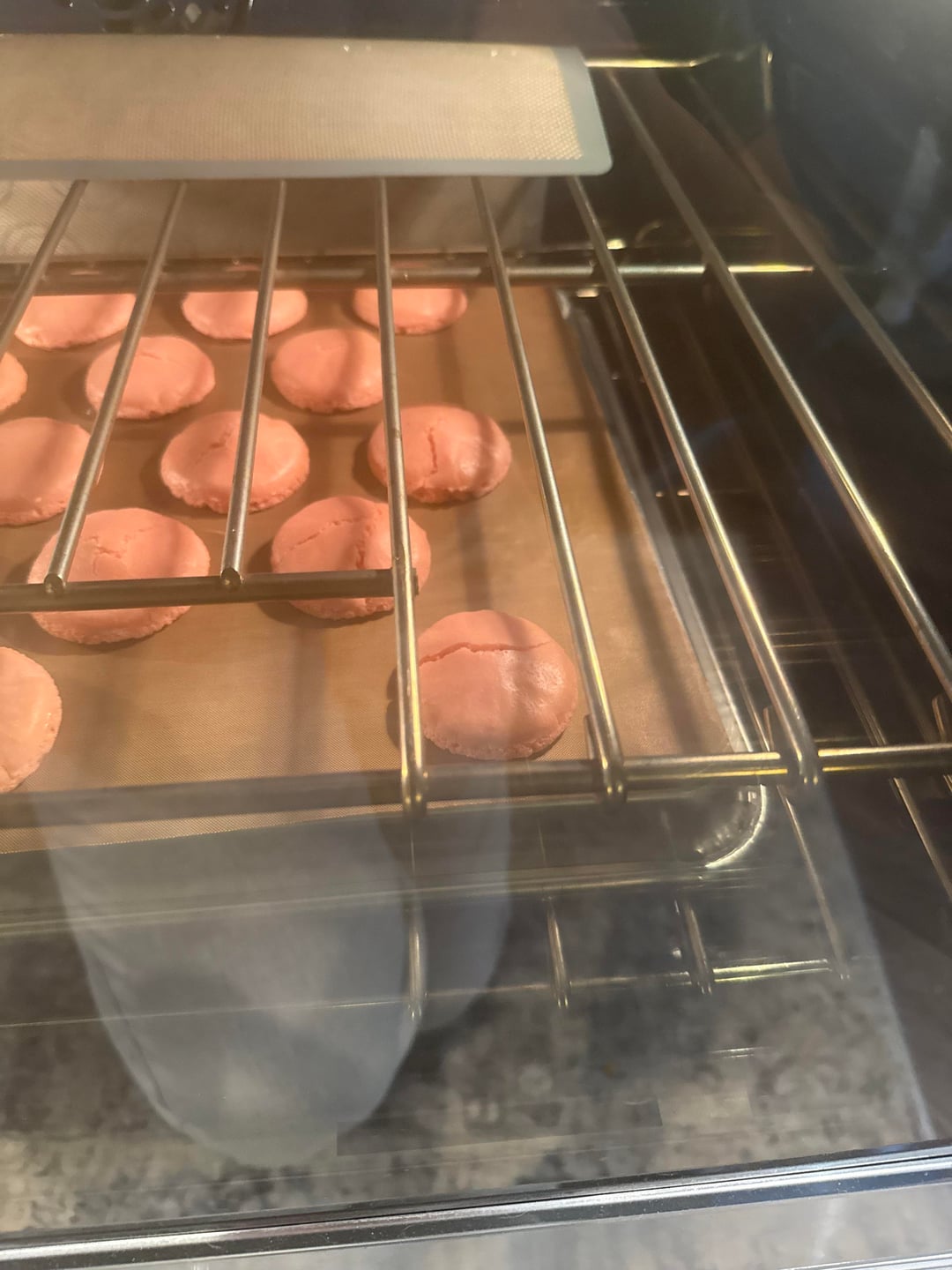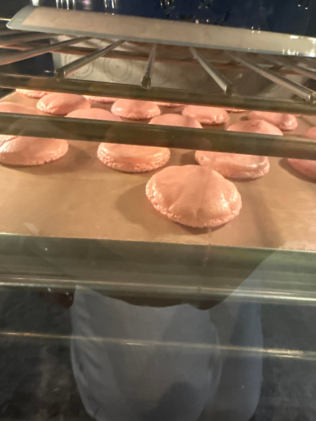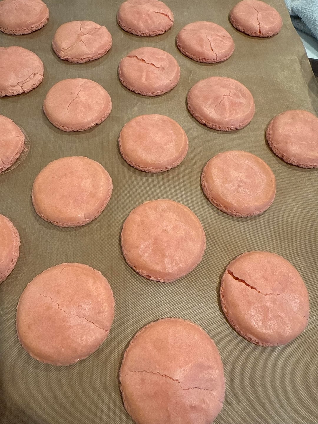 Not sure what I did wrong I never had this happen but at least they were actually full and fluffy, I’m assuming it’s because the steam escaped through the cracks. I thought I would try Swiss since my French get major hollows only after they cool, I can’t seem to find the right bake time/ temp, the steam is causing them to collapse. I also thought maybe my peaks were too stiff since every video shows a different level of stiffness. I tried to pull it back a bit since it would be more stable. I made a second Batch with Swiss but I had blotchy shells and they were super dense. Not the almond flour since it’s not an issue with French so I’m not sure where to turn next. Should I just go back to French ? At least they look pretty. Just can’t seem to have a stable center that the steam doesn’t collapse. I’ve attached my Swiss batch but would love your opinion on the meringue.