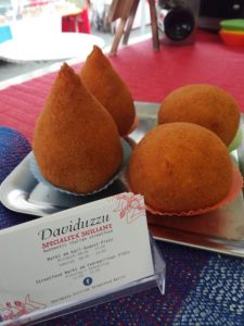 The arancin* is the main dish in Sicily on December 13, the day of Saint Lucia. On this day, in accordance with an ancient tradition, Sicilians do not eat bread and pasta and fall back on rice. There are 2 main kinds of arancin* that will be sold during this feast (but many other versions are available): “Abburro” (with a filling of butter, bechamel, cheese and cooked ham) and “Accarne” (with meat sauce filling). Whatever the choice, it feels like nothing else is eaten during this day. This celebration dates back in the past, since at least 1700.