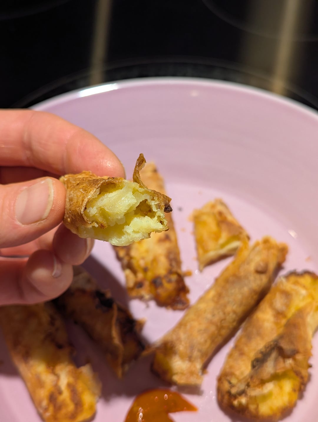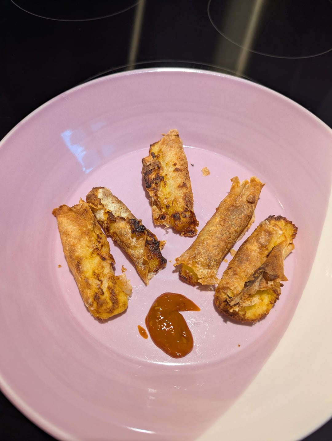 The potato streak continues – mashed potato spring rolls with chili garlic sauce ☺️ by Simjordan88 Dining and Cooking
