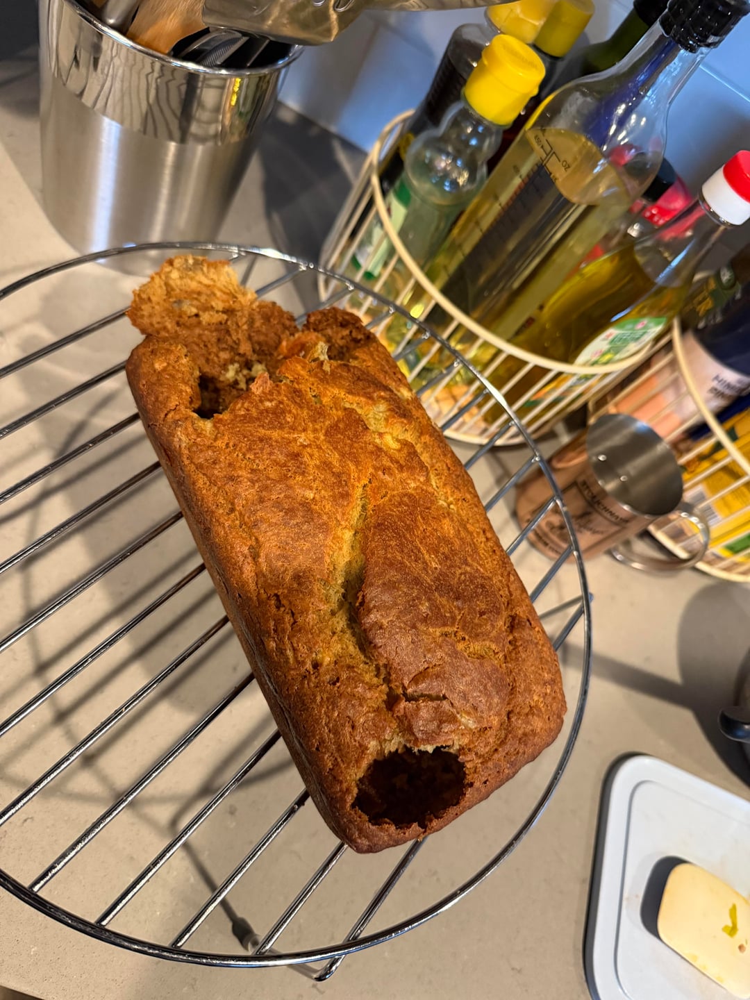 This is how my wife decided to eat the freshly-baked banana bread (before it was finished cooling). She is a maniac, I don’t know if I can continue to bake if I know this is what awaits everything I make.
