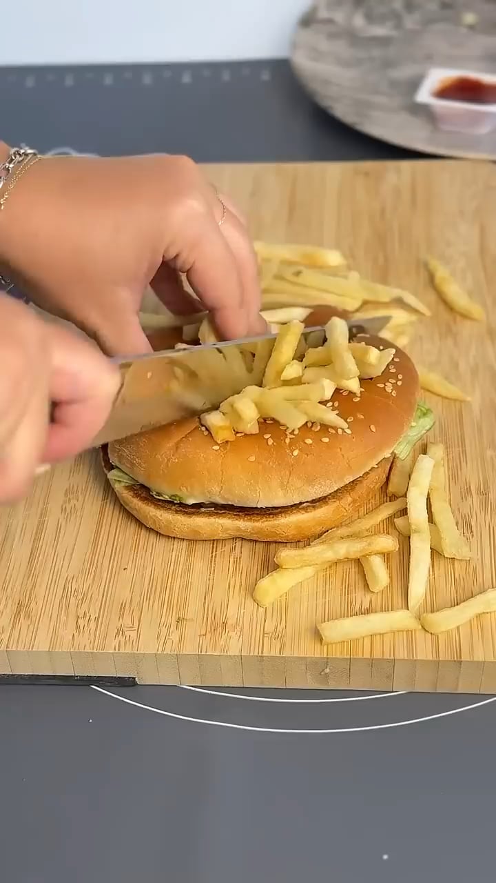 I call this “butchering”… It was a perfectly good burger with tasty-looking fries..