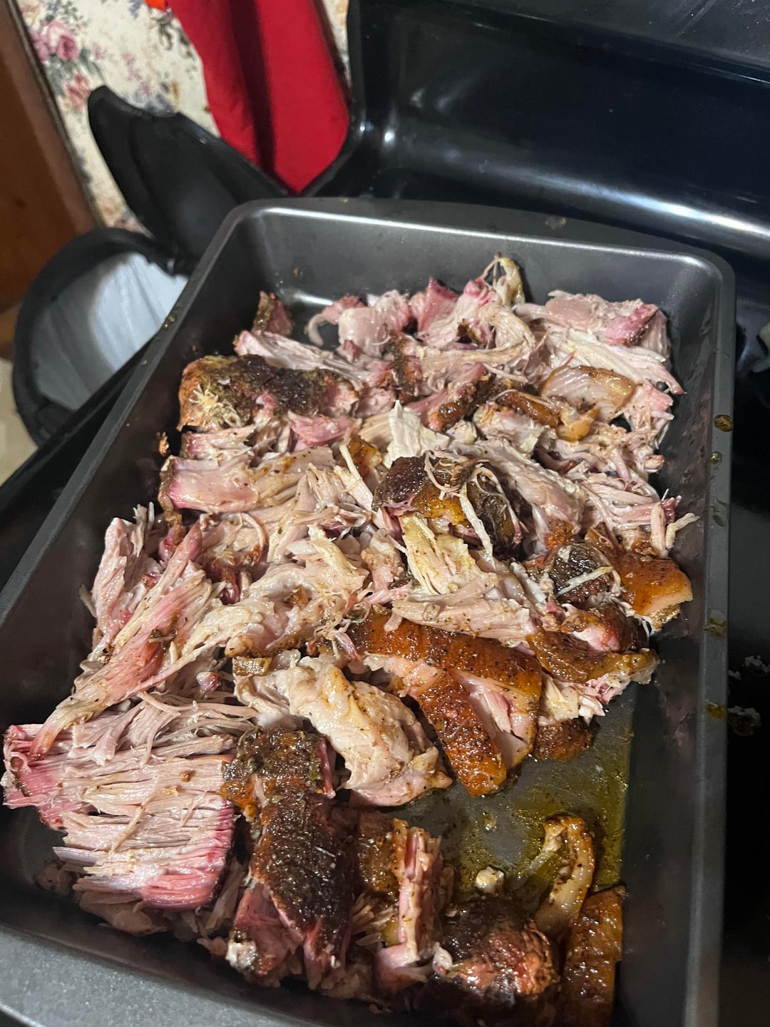 Super freakin tender and tasty. Roughly 3lb pork shoulder smoked at 225 for like 7 hours and then rested in the over for 2. Pulled it apart and it just melted. Next time I’m gonna try injecting it with apple juice and apple cider vinegar. Otherwise, great freaking dinner.