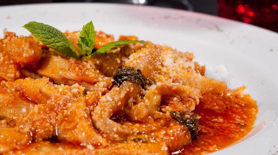 Supermarket tripe is usually bleached to look less intimidating, but real devotees buy it straight from the butcher, where it keeps its natural brownish hue. I make my soffritto with patriotic zeal—onion, carrot, and celery lined up like the Italian tricolor—and add the tripe, cut into strips. I let the water evaporate, then deglaze with white wine. Next, add a can of peeled tomatoes, crushed by hand, and a sprinkle of Roman mint, salt, and pepper. Cooking time varies: an hour for pre-cooked tripe, twice as long if it is raw. I prefer to let the stew burble on the stove, checking from time to time just to breathe its dense aroma, and to stare into the pot as if it were a mandala. At the bottom, the floating strips make a composite geometry in a red interstellar space, swirling around in a cosmic dance. In truth, I believe this is what the universe looked like after the Big Bang. In the beginning… there was tripe.