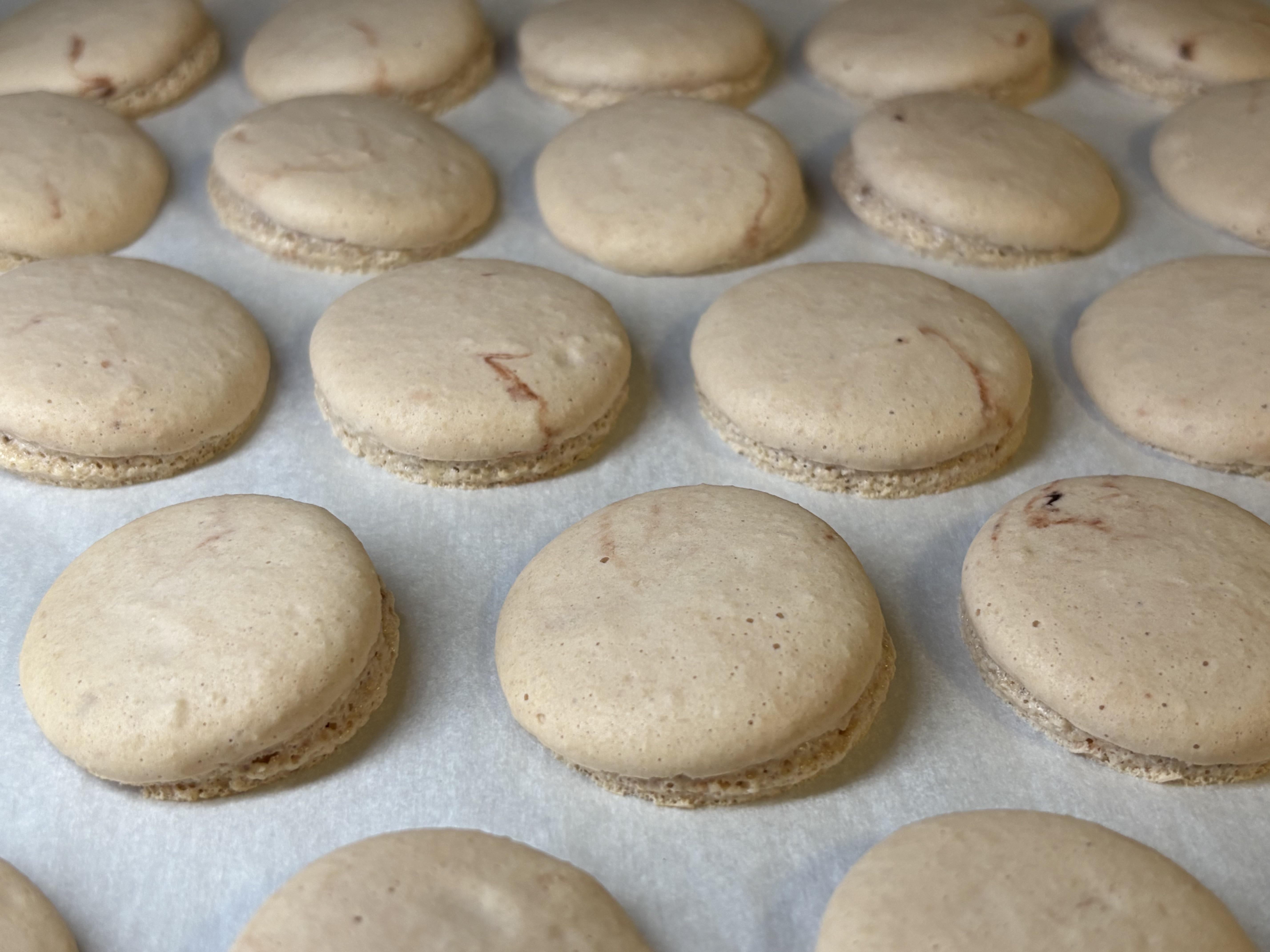Some are a little lopsided, but I think they’ll look ok once filled. I know they’re not currently pretty, but it’s my first try with vegan macarons and I’m happy they’re not just a complete disaster.