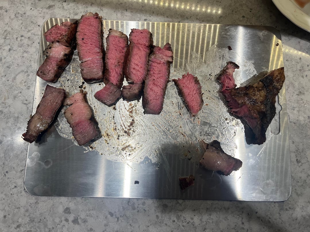 -after letting it rest for 10 mins, I sliced it up.. By far the best steak I’ve ever had!!