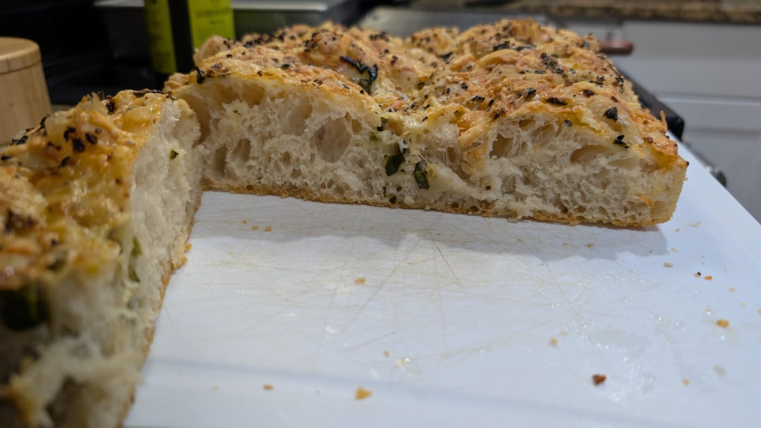 After posting my first focaccia a few days ago and asking for help. I took everyone's advice and tried again. This one turned out soooo much better. I added jalapenos, cheddar, and everything seasoning. How's it looking?