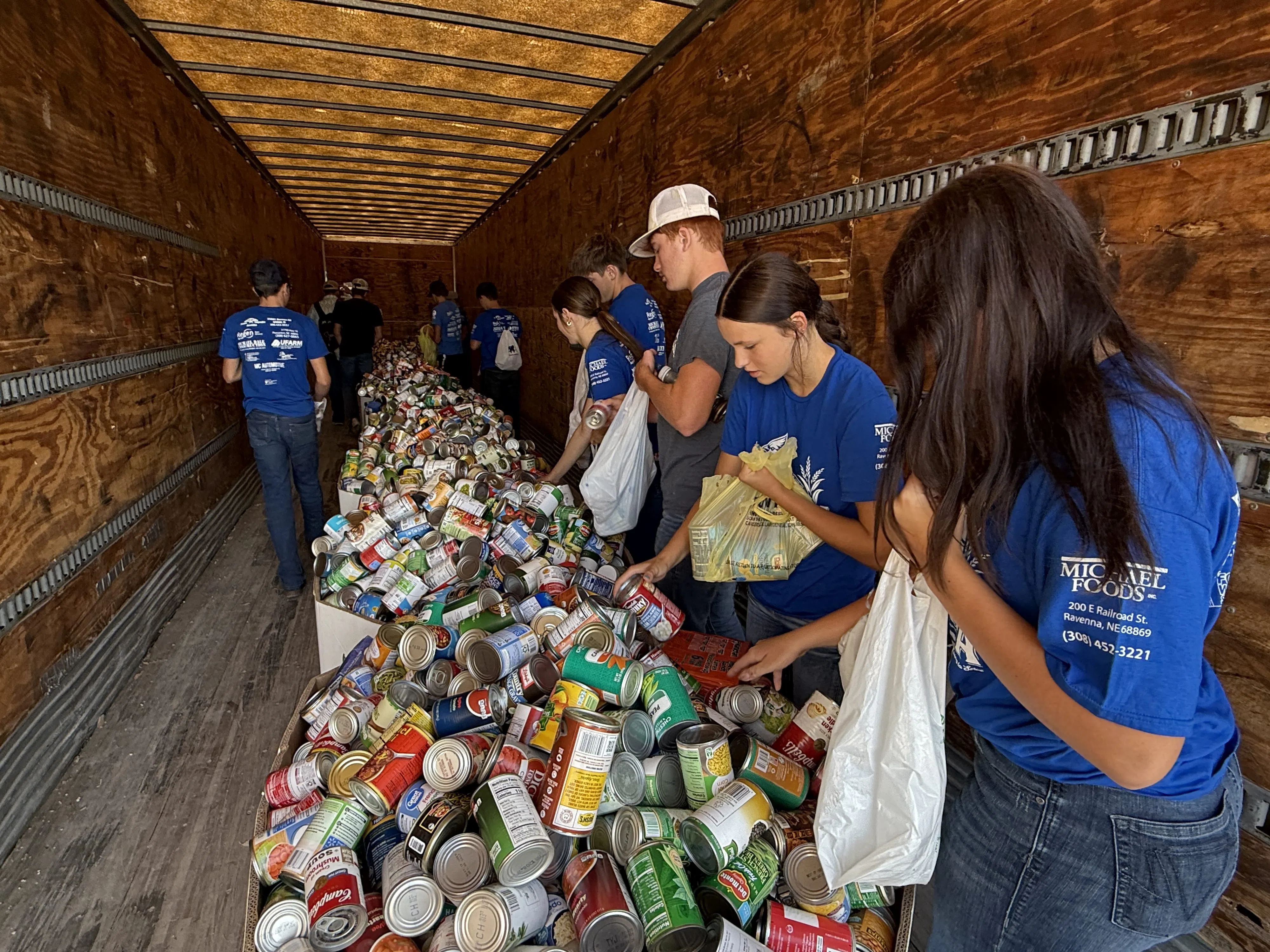 Nine local grocery stores collected food leading up to Husker Harvest Days, bringing the total collected in 2025 to 16,241 pounds, leaving containers overflowing inside a Chief Construction trailer parked at the show’s entrance. The total number of pounds and schools participating was slightly down from 2024, which is an unfortunate donation trend reported by organizations.