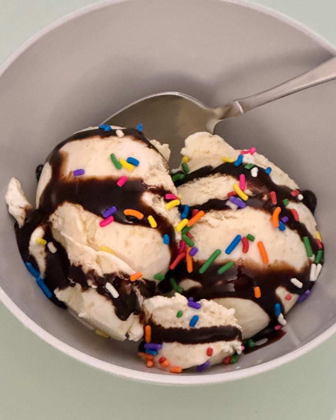 Better than I expected. The flakes were pulverized into fine bits, so they weren’t soggy or a weird texture. The cereal milk flavor delivered. Since I was already embracing my inner child, I added chocolate syrup and rainbow sprinkles. Good stuff! I believe Tony the Tiger would approve!