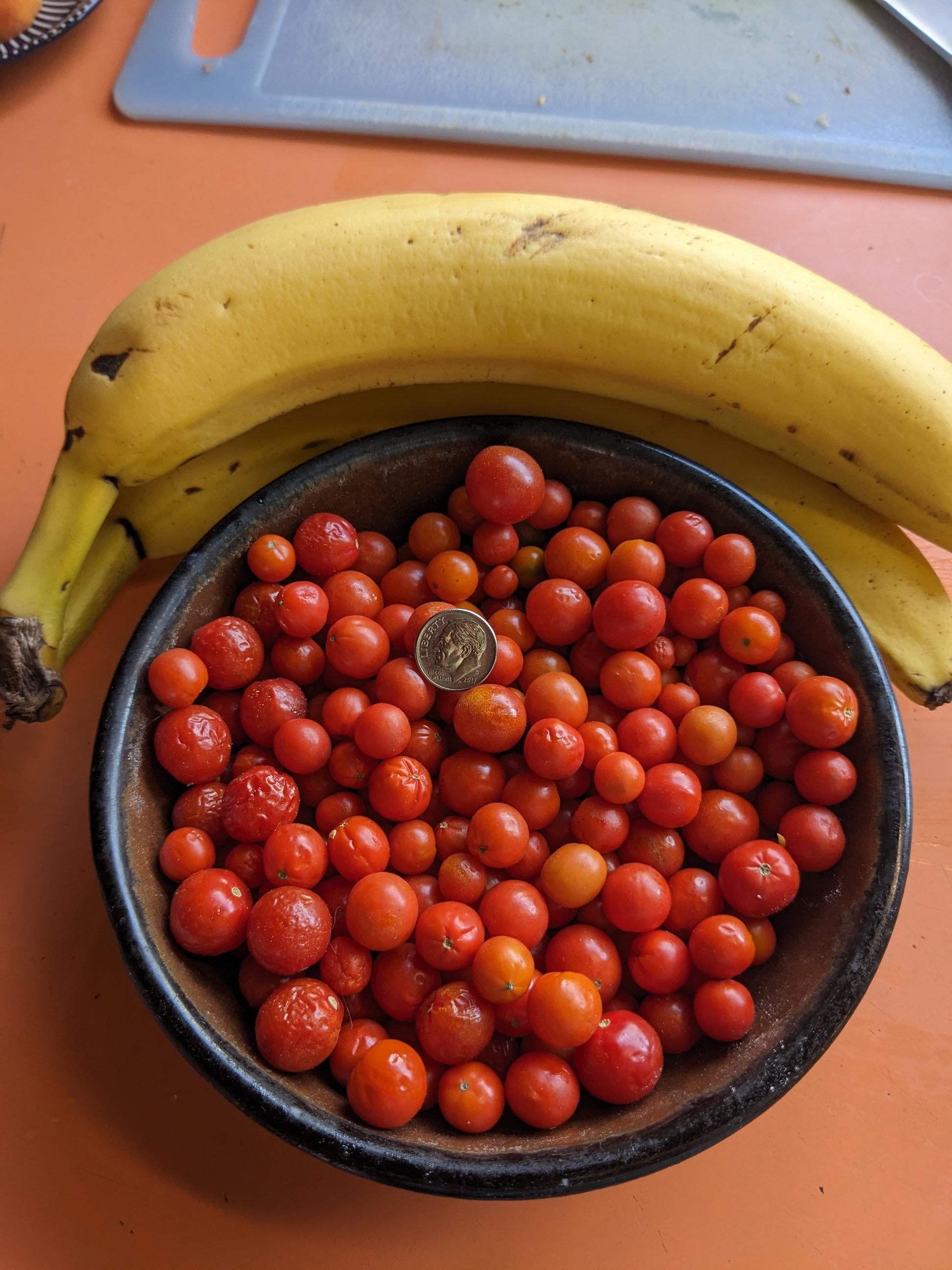 These were supposed to be Sweet 100s, only they clearly aren't 😠They are teensy with thick skins, very tart. Not great for munching! BUT – they have terrific tomato flavor.