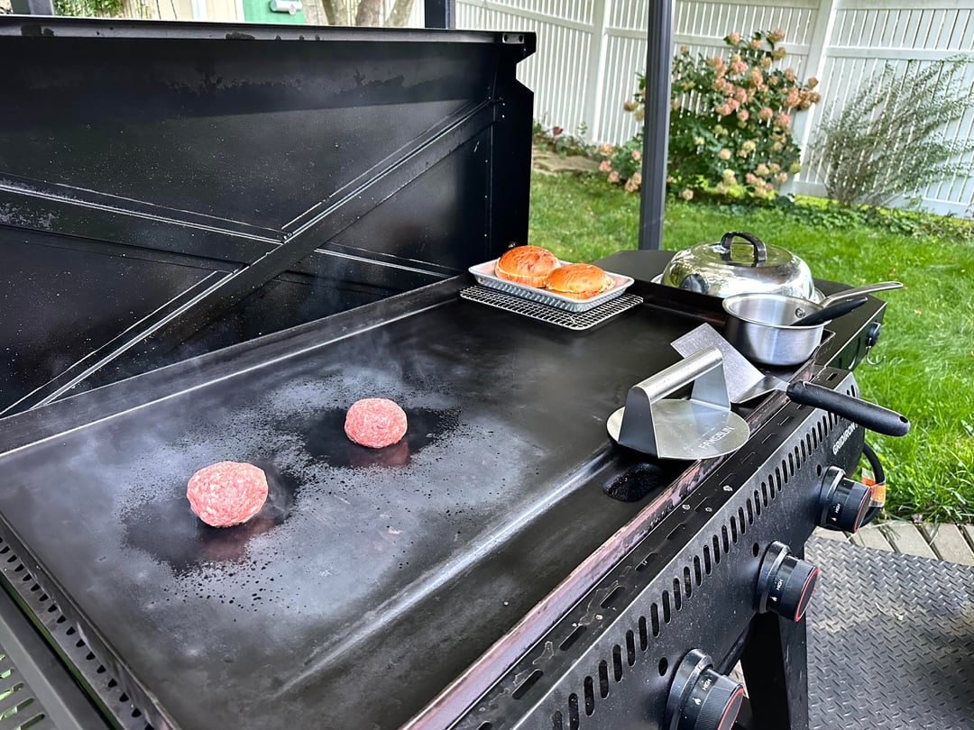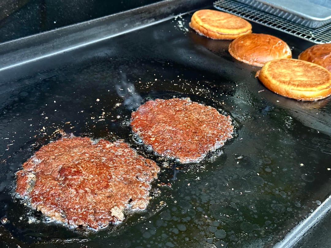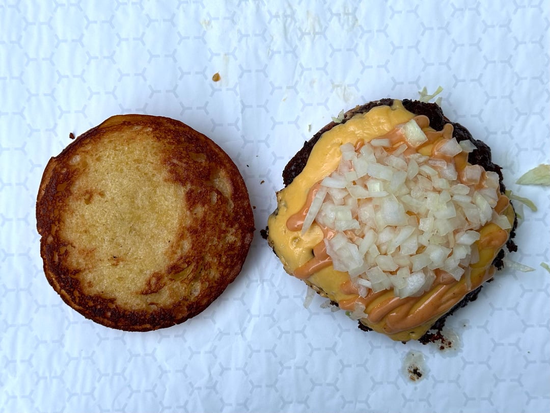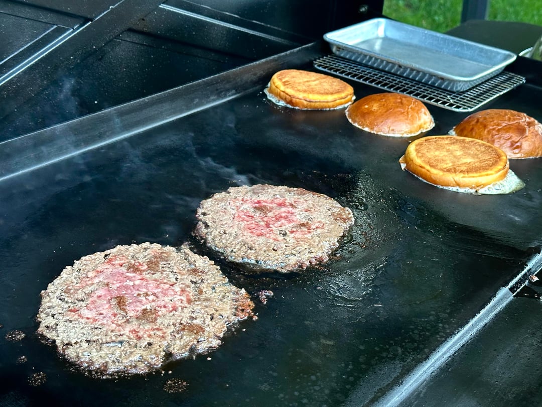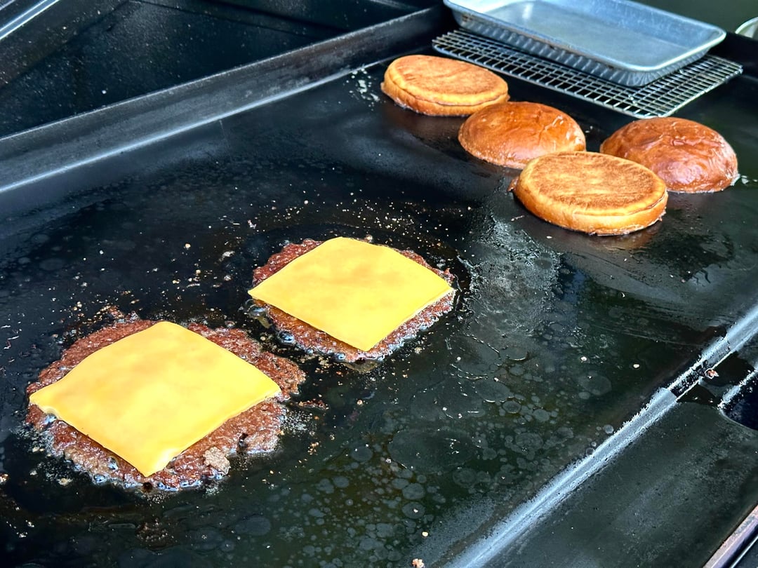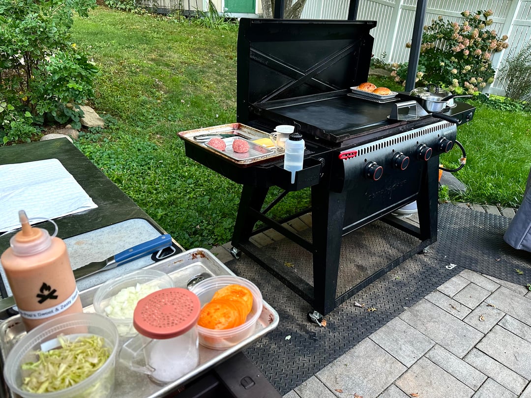 Burger night! This week I kept it super simple. Single home ground chuck smash patty, two slices of American, shredded lettuce, heirloom tomato, diced raw onions, and my sweet and zesty sandwich sauce, on a buttered and griddled homemade bun. And the burgers do get wrapped after.