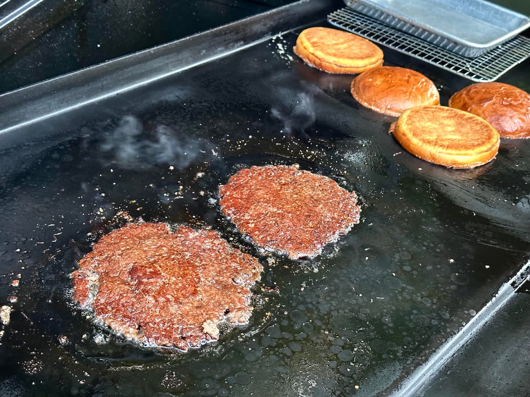 Burger night! This week I kept it super simple. Single home ground chuck smash patty, two slices of American, shredded lettuce, heirloom tomato, diced raw onions, and my sweet and zesty sandwich sauce, on buttered and griddled homemade bun. And the burgers do get wrapped after.