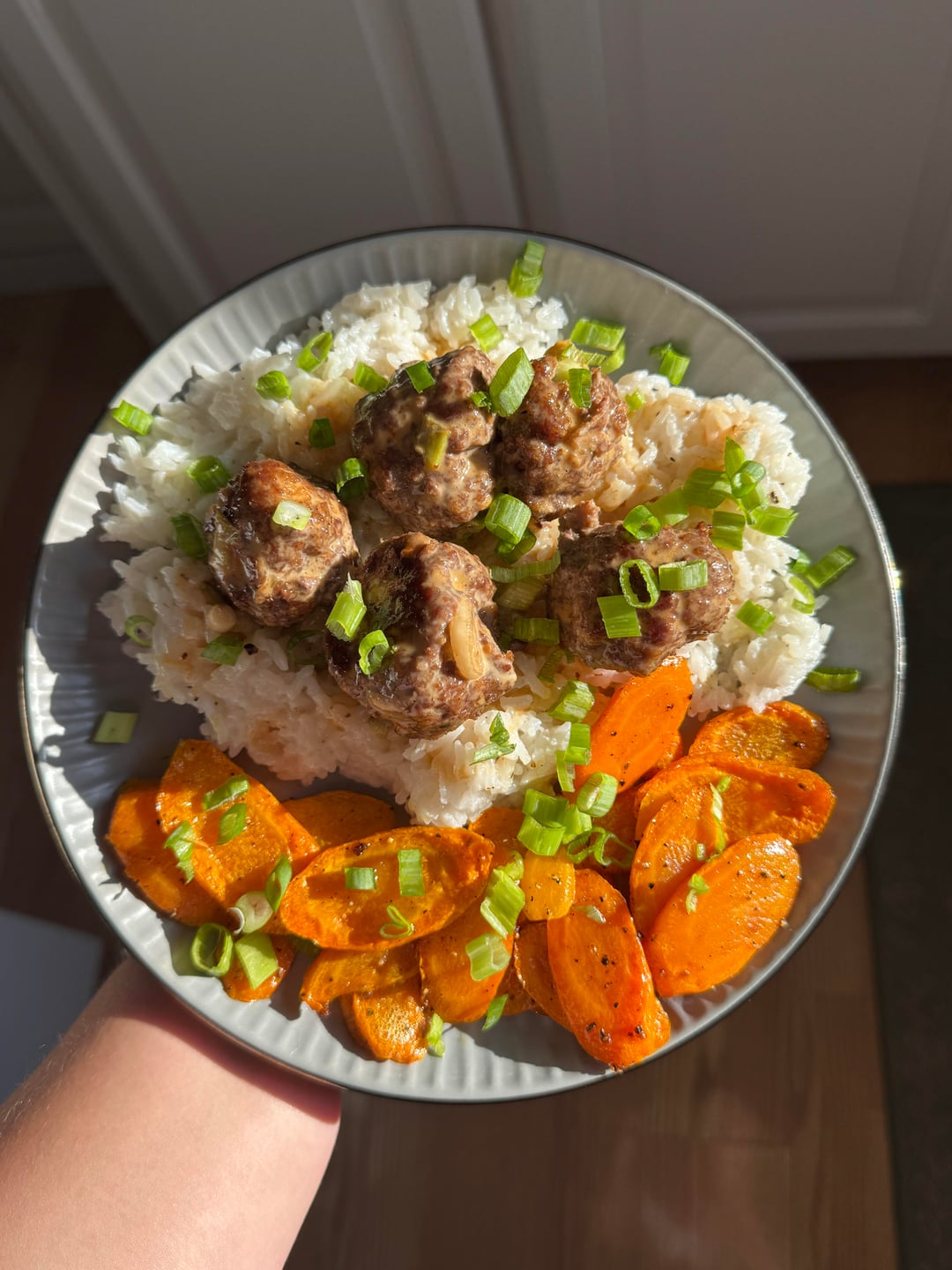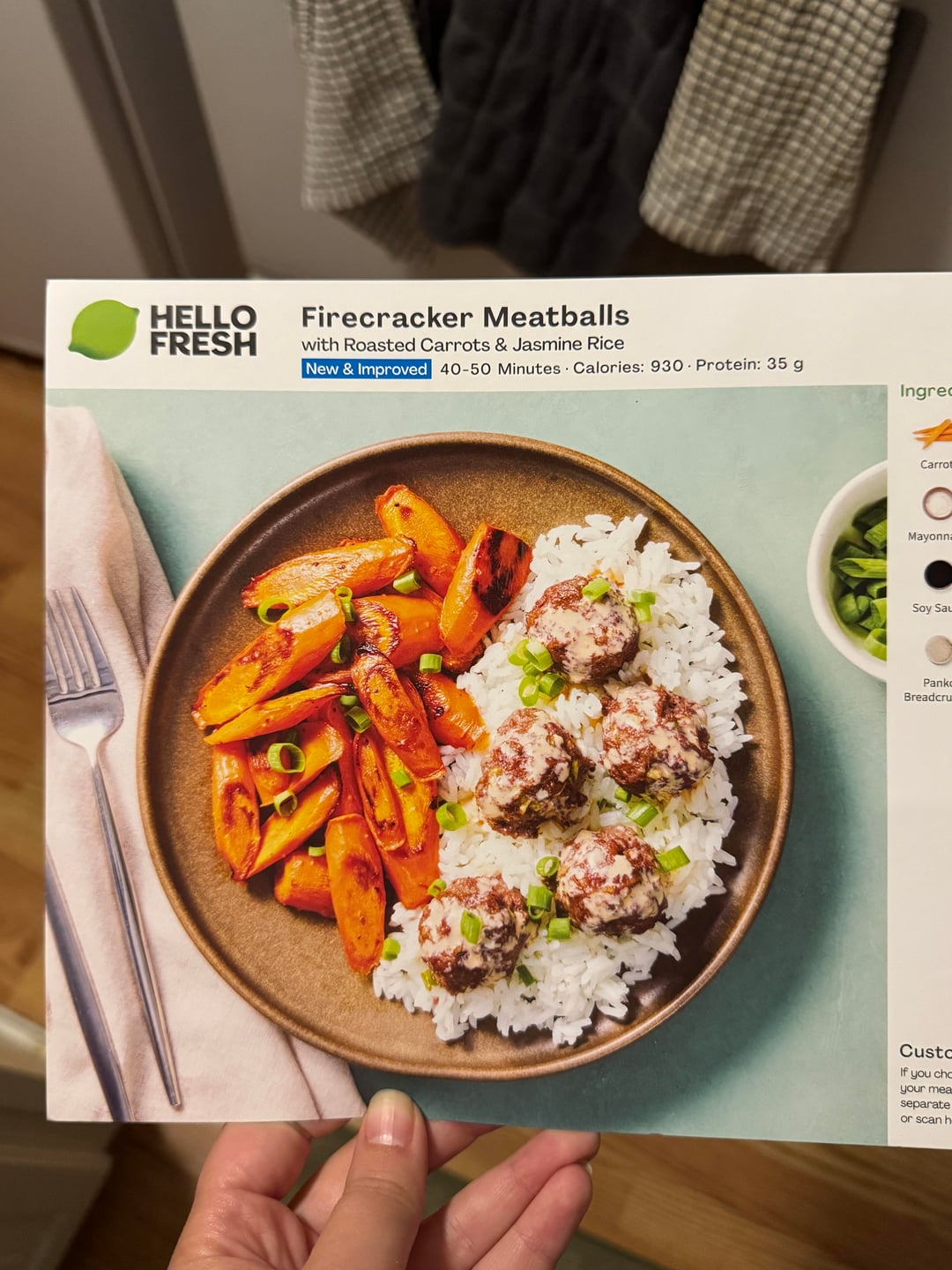 These were good, I’d give them 7-8/10. Love the sauce you toss them in and I love that you really pack the meatballs with the chopped white onion. Carrots were a decent side pairing for a veggie but I almost want to much on something crunchier like an oven roasted broccoli properly crisped since there is a lot of mushy textures already with this meal. It could be that I oiled the carrots too much. These pair really well with the rice, I think I’ve tried one other HF meatballs that we loved.