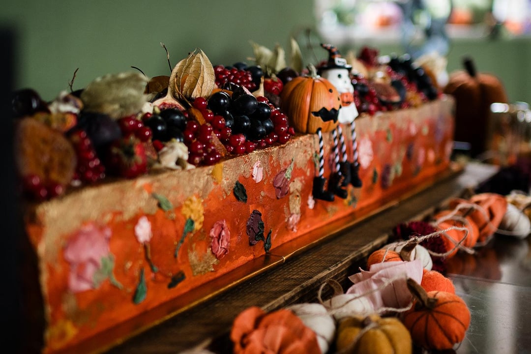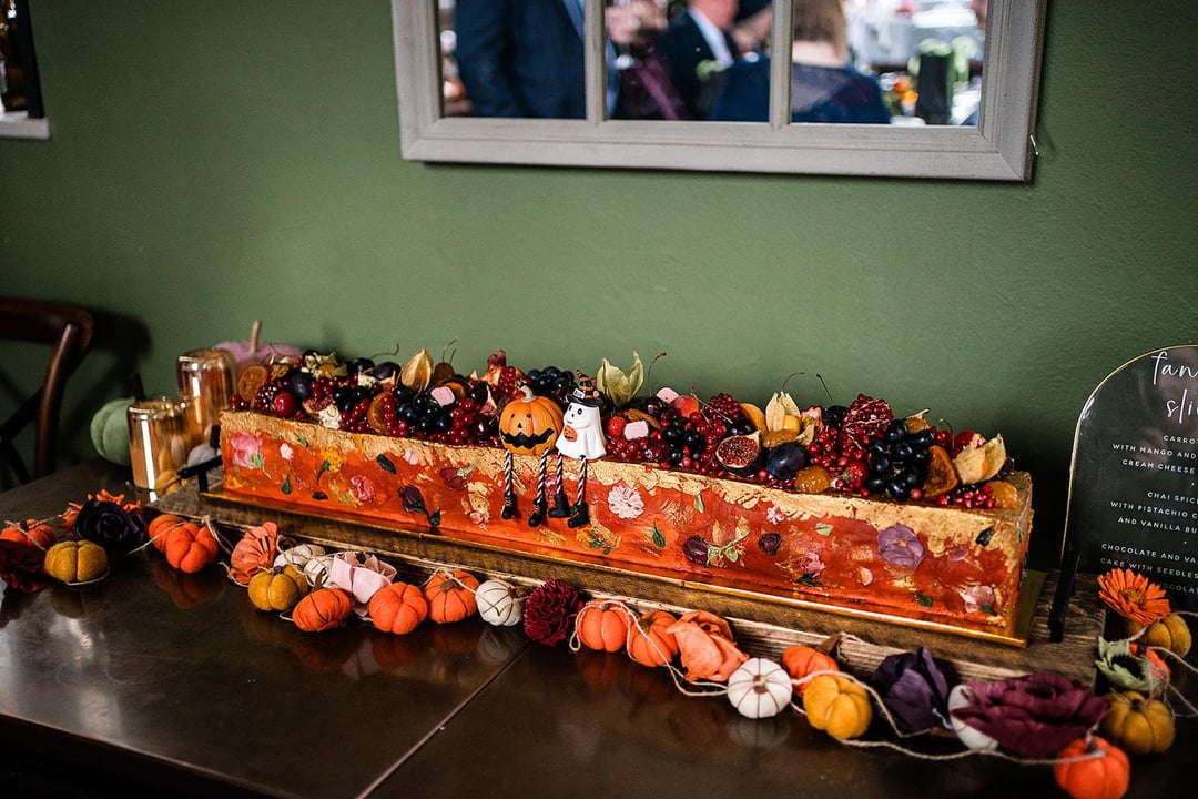 is the decor on top edible or just decorative? either way this is SO beautiful and i would’ve been thrilled to see this at someone’s wedding! love the halloween theme, i hope your marriage is as beautiful as this cake <3