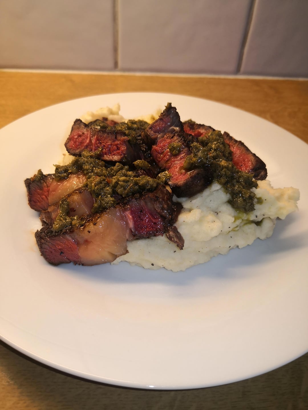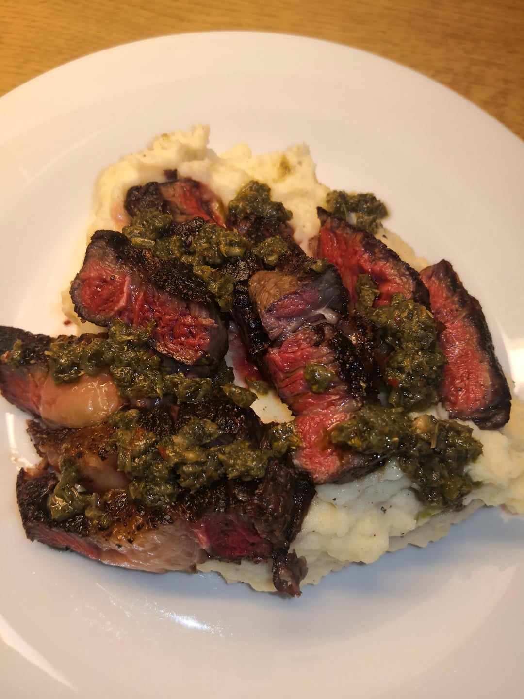 Homemade mashed potatoes. And store bought chimichurri.