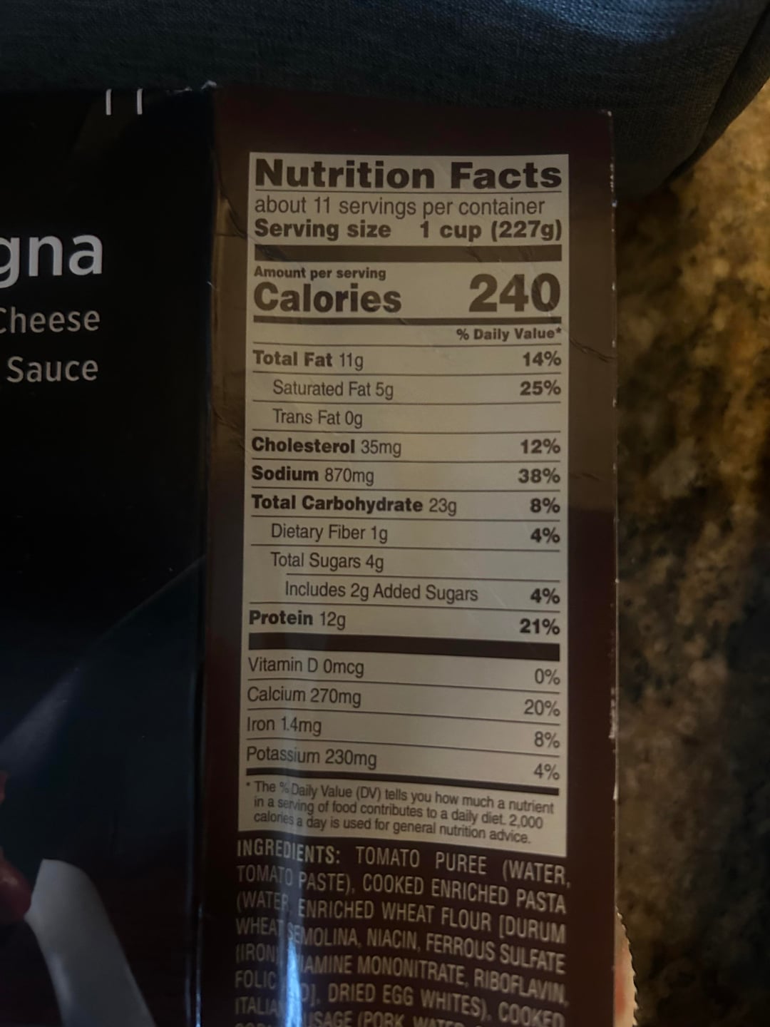 227 grams is about half a pound. So imagine you’re holding a 1 lb tube of ground beef. Now replace ground beef with that lasagna, half that, and boom, you got 240cal
