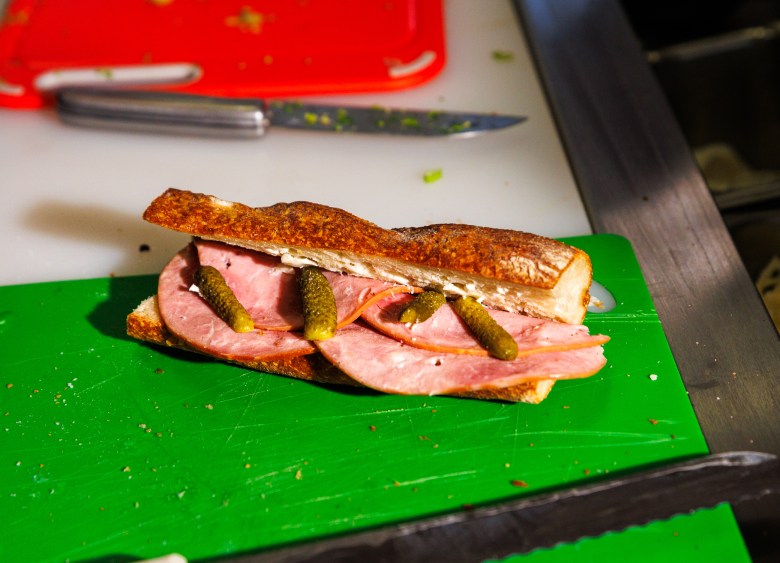 The pan bagnat sandwich at Emilie and the Frenchies in Aptos. Credit: Kevin Painchaud / Lookout Santa CruzLe Parisien sandwich with ham, salted butter and cornichons at Emilie and the Frenchies. Credit: Kevin Painchaud / Lookout Santa Cruz