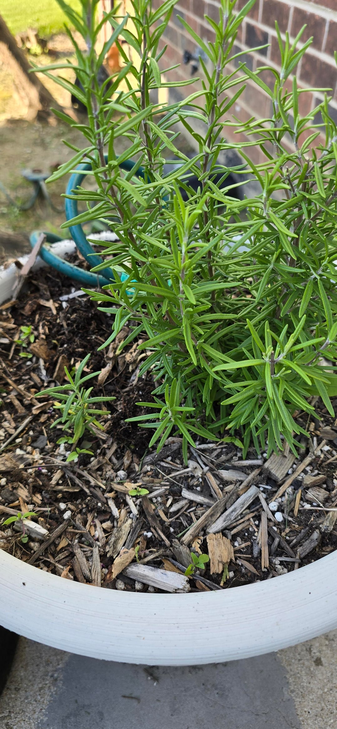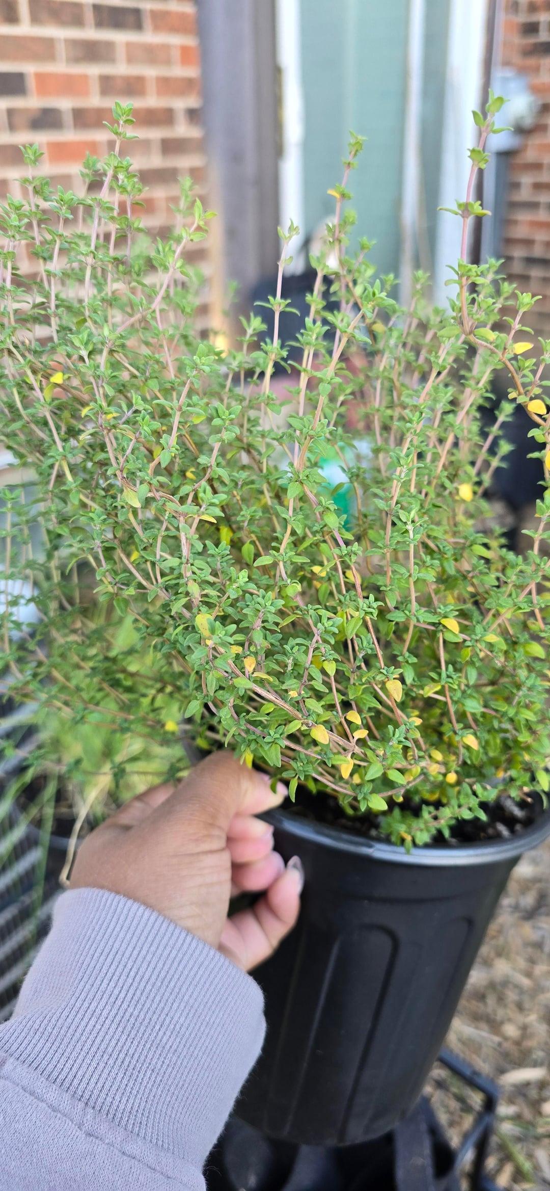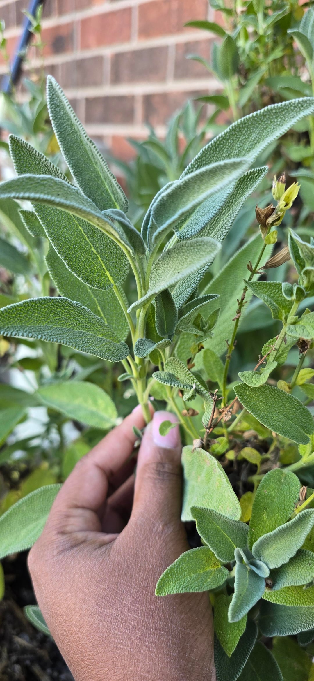 I started my Sage last year, she's pretty big and lush. The thyme was started this past spring along with the little tiny rosemary 🤣 the bigger one is store bought from Wholefoods. I always end up spending a ridiculous amount on fresh herbs from the grocery store for my Thanksgiving and Christmas dinner. I'm excited to not have to do that this year.