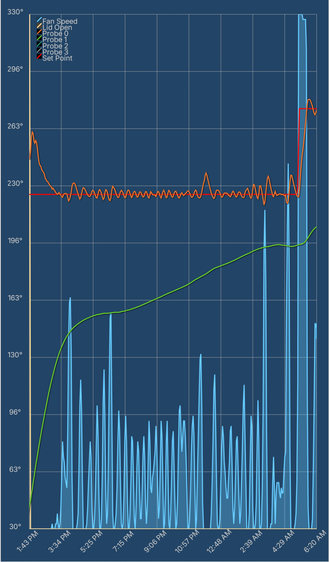 Green line, internal probe temp