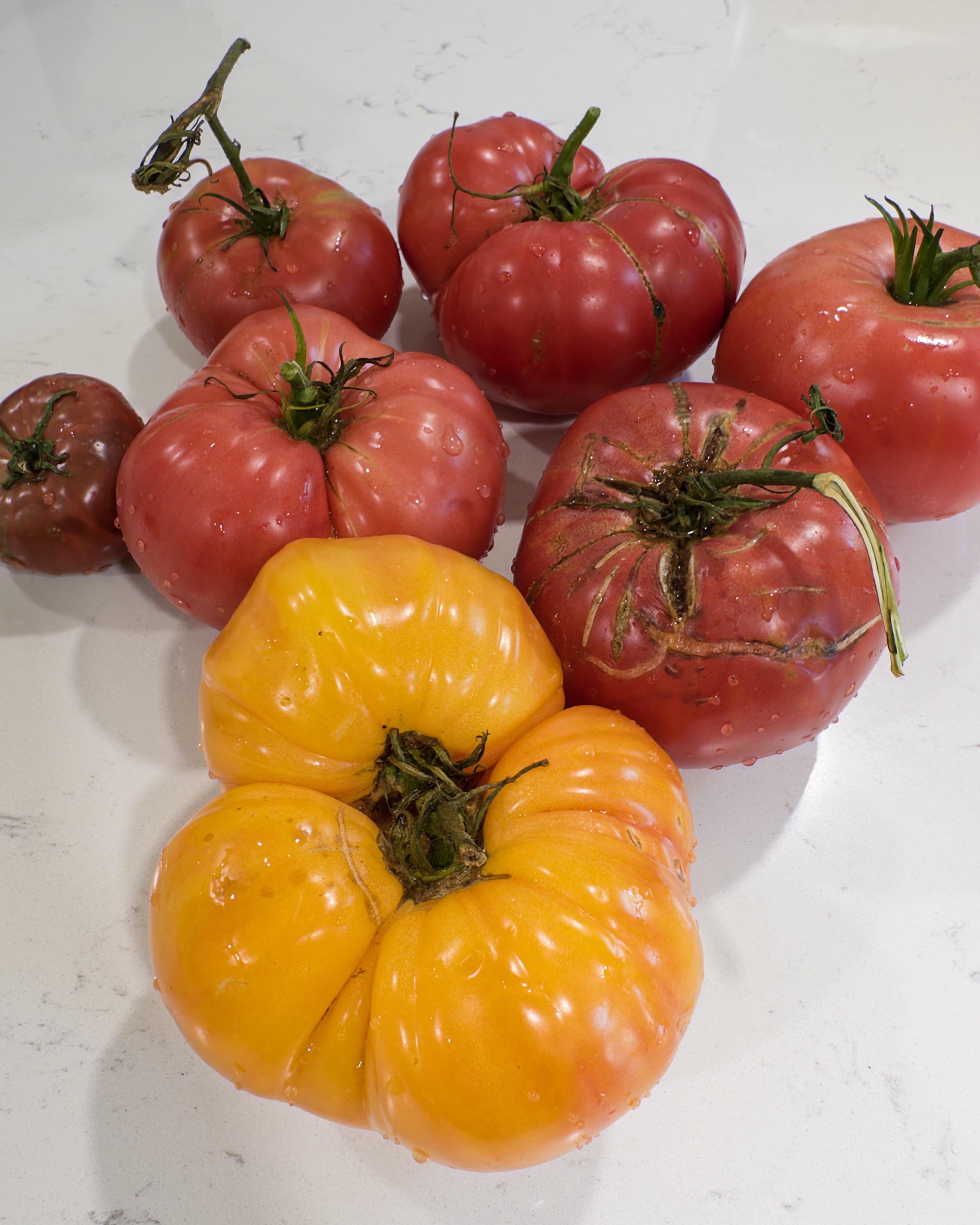 What are three cracks in the tomato from