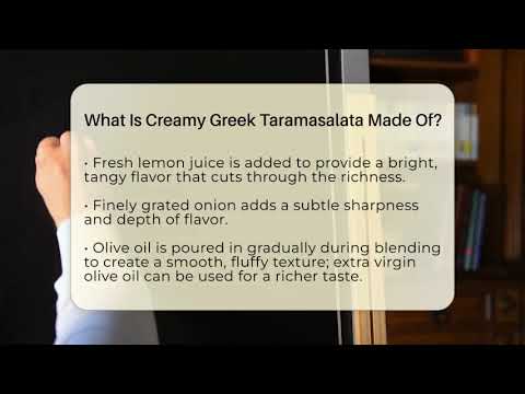 What Is Creamy Greek Taramasalata Made Of? Are you curious about how Greek taramasalata is made and what makes it so special? In this video, we’ll walk you through the ingredients and preparation process of this beloved Greek dip. You’ll learn about the main component, tarama, which is salted and cured fish roe, and how it contributes to the dip’s distinctive salty flavor and creamy texture. We’ll also discuss the common base ingredients like stale white bread or boiled potatoes that help balance the saltiness and add richness. You’ll discover how fresh lemon juice is used to give the taramasalata a bright, tangy flavor, and how finely grated onion adds a subtle sharpness. The video explains the importance of gradually pouring in olive oil during blending to achieve that smooth, fluffy consistency, and explores optional ingredients like fresh dill or smoked salmon that can enhance the flavor. We’ll also cover traditional serving suggestions, including warm pita bread and fresh vegetables, making it perfect for gatherings or fasting periods. Whether you’re interested in Greek cuisine or want to try making this dish at home, this video provides all the tips you need to create an authentic taramasalata. Join us to explore Greece’s rich culinary traditions and learn how to bring this delicious meze to your table.