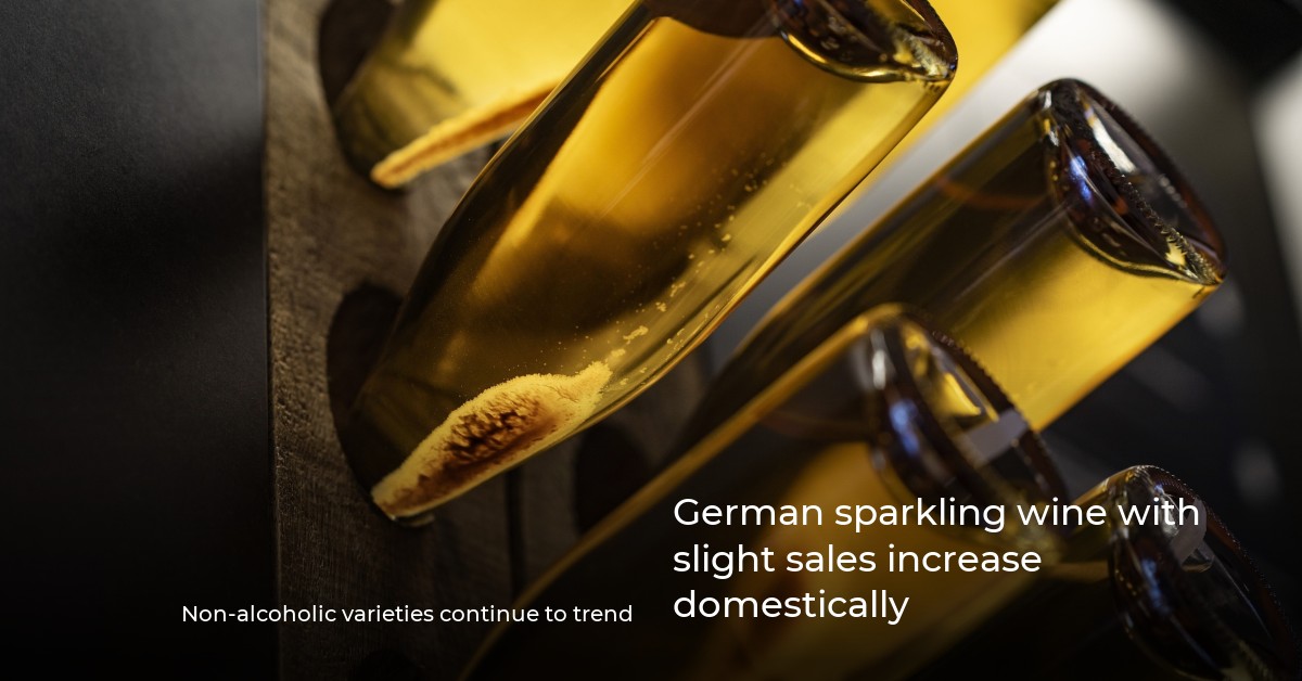 The demand for de-alcoholized sparkling wines rose by 9.4 percent to 19.9 million bottles sold. Together with the non-alcoholic varieties, 266 million bottles of German sparkling wine were sold in the previous year, representing an increase of 1.1 percent. The share of non-alcoholic sparkling wines thus rose from 6.8 percent to around 7.5 percent.