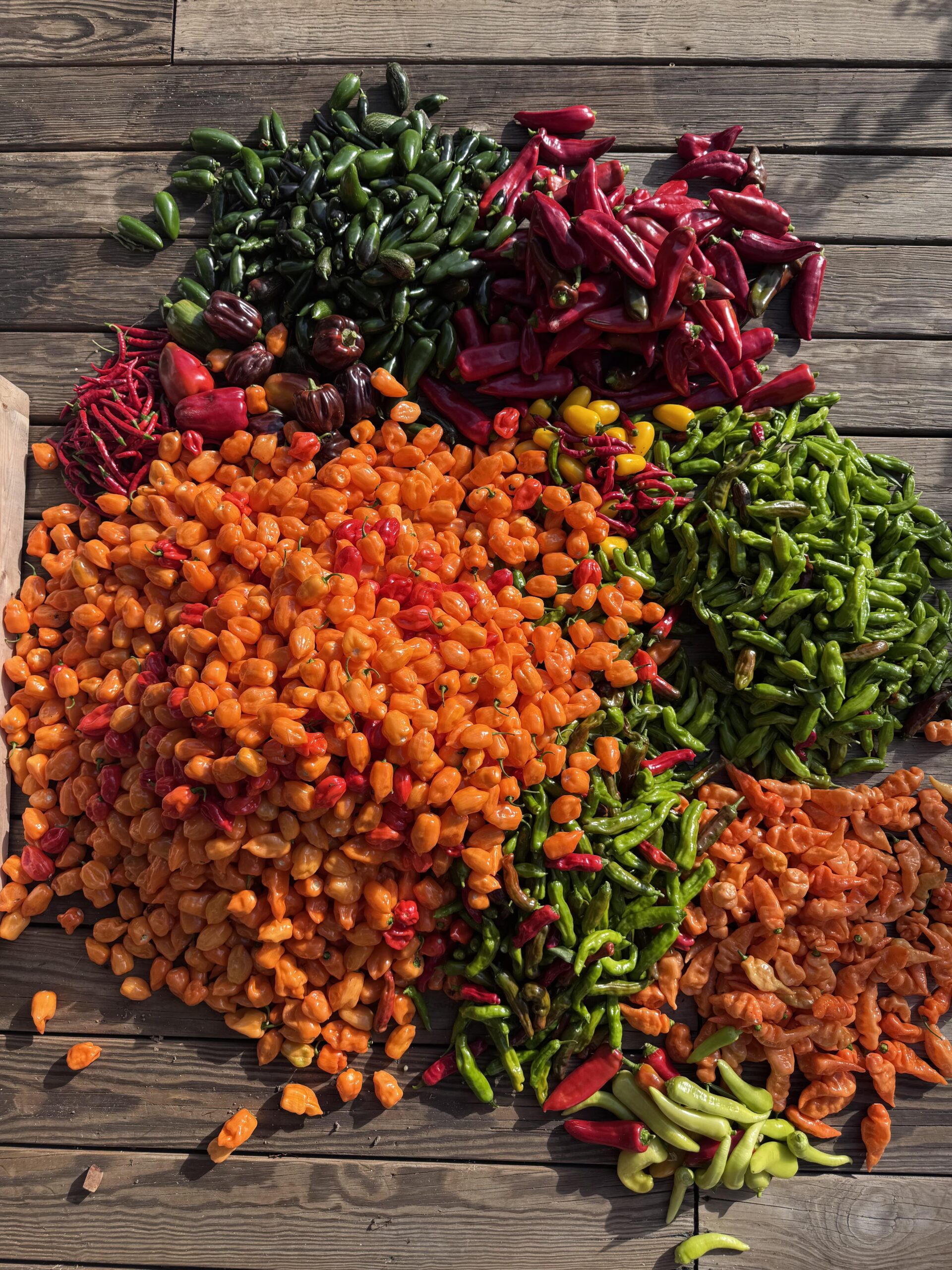 All the habaneros are going to Hotsauce. Jalapeño to pickling. Bananas to grilling. Habanada to experimenting. Shishito to grilling and friends. Thai to mash. Hatch to beats me.