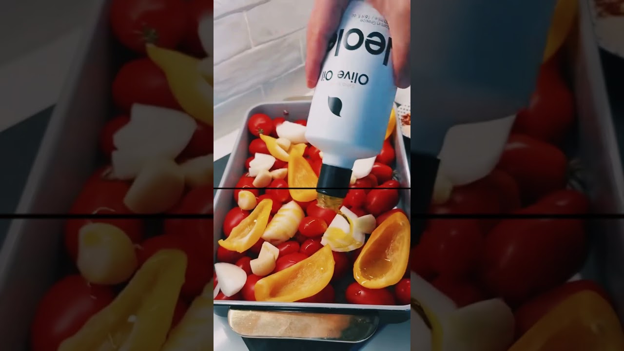 It’s becoming soup season and this is how you can add a ton of protein to make ridiculously good ones like this high protein creamy tomato basil soup. This is 79 g of protein and it’s so good. We’re going to start with a bunch of tomatoes. Place them in an oven safe pan with onion, bell peppers, and lots of garlic. Drizzle with olive oil. Season with salt, pepper, and a few easy spices. Pop them into the oven. When they’re roasted and nice and caramelized, blend them up with two of the greatest protein hacks, the best bone broth you can find, and of course, cottage cheese. Toss in fresh basil.