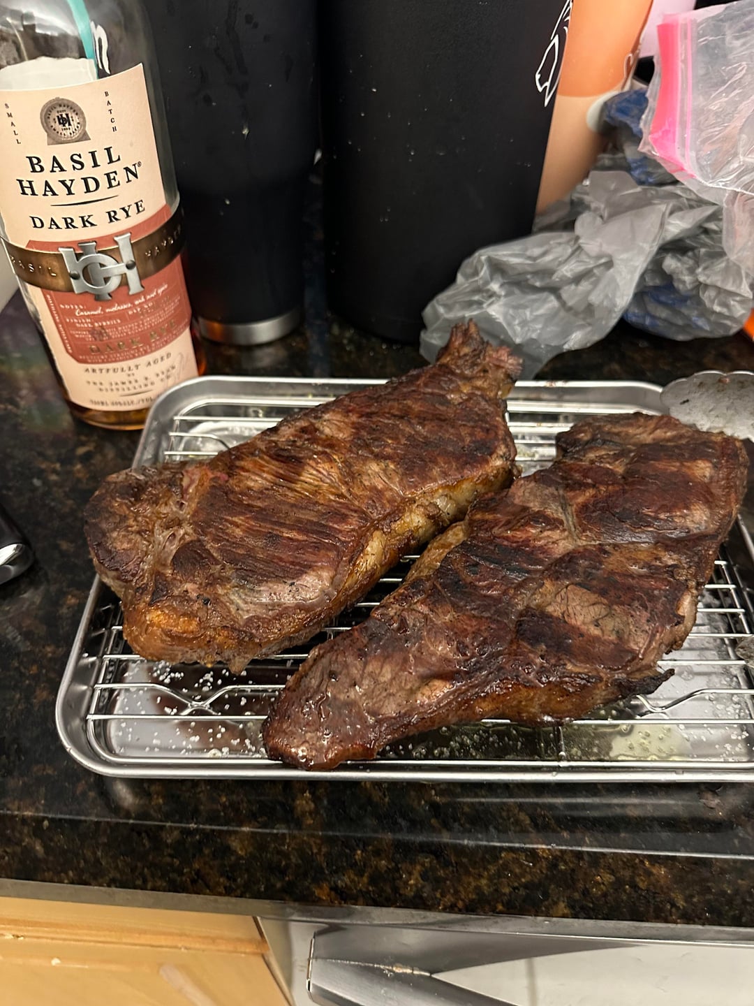 Got a nice thick cut at BJ’s , temp at 135 took off to get to med- (or a touch above because of the wife)