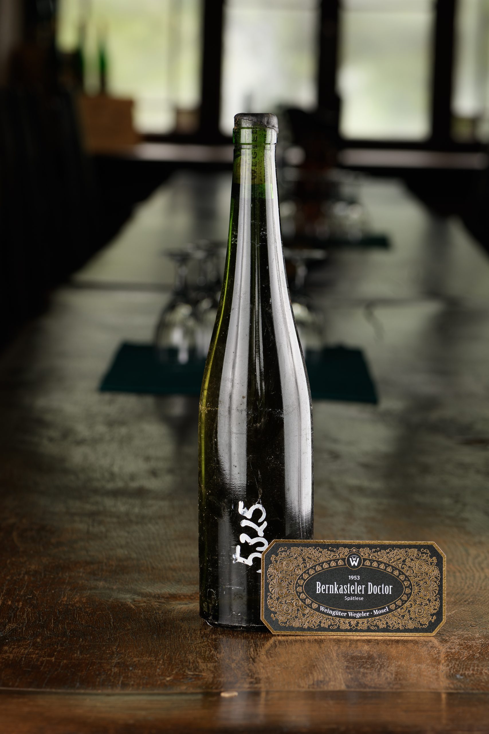 In the estate’s historic cellar, five perfectly preserved bottles of Riesling from the Bernkasteler Doctor vineyard have come to light. They are from the 1953 vintage, hailed as one of the greatest Riesling years of the 20th century. The Spätlesen from this remarkable harvest are renowned for their poise, delicate fruit, and extraordinary capacity to age.