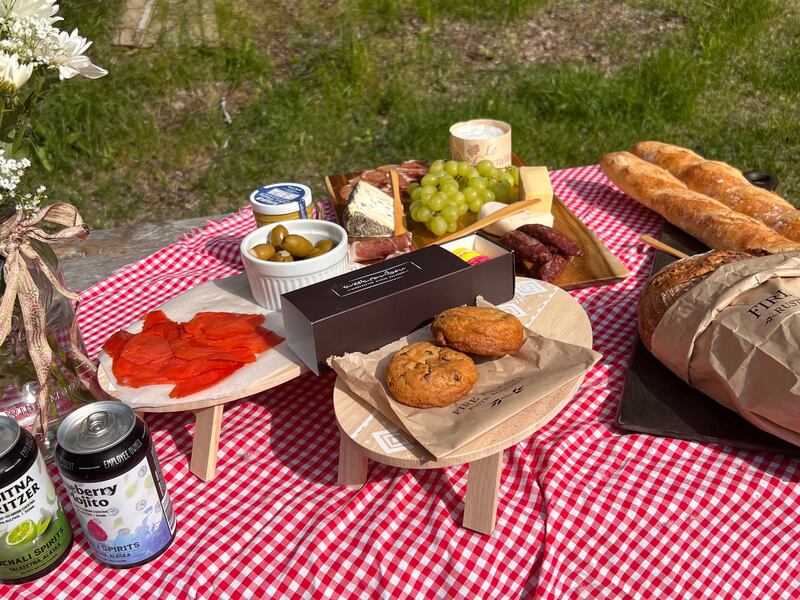 Food writer Mara Severin’s perfect Anchorage picnic includes local drinks, bread, meats, cheese, crudité and even dessert. (Photo by Mara Severin)