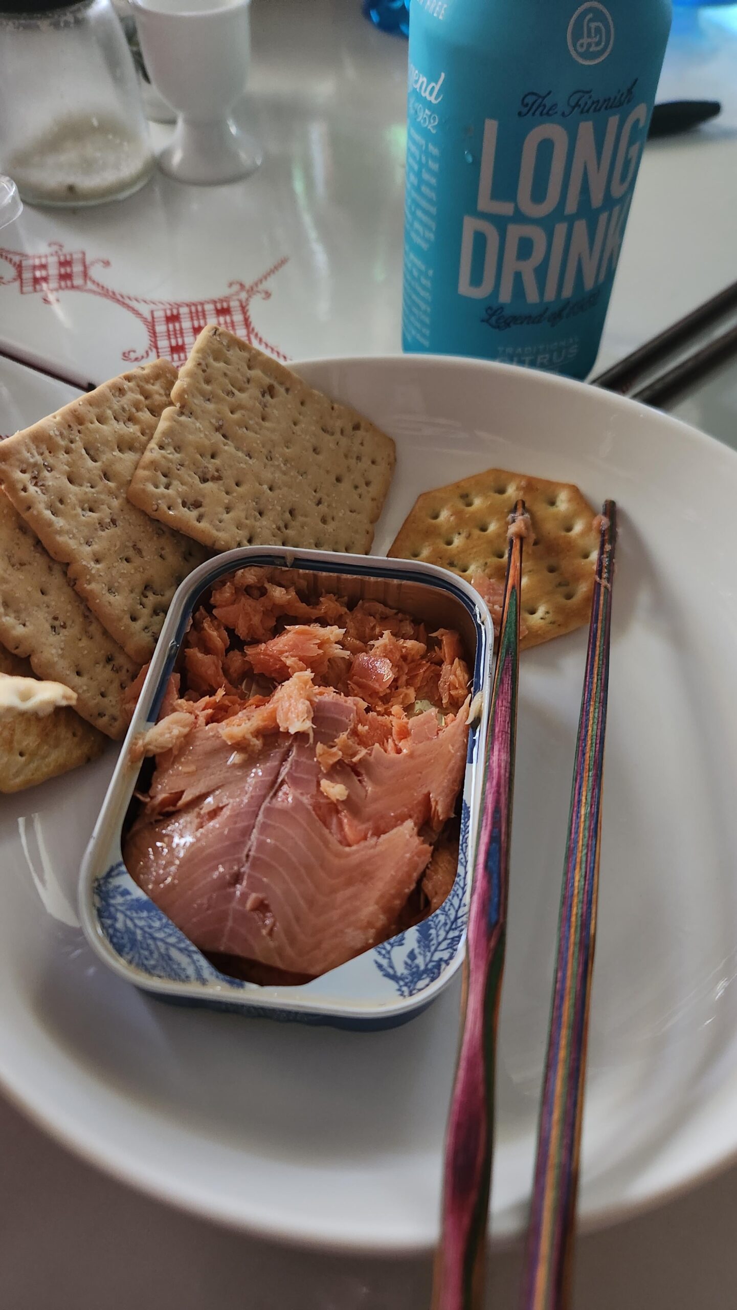 I thought it was quite nice. by sarathelaundress 9 Comments OhManatree 3 months ago One of my regular tins to eat. SchmeedsMcSchmeeds 3 months ago I just discovered these recently as well and went back for more. Delicious and goes well with that long drink, excellent pairing 😉 Cheers! sarathelaundress 3 months ago I’ve been eating a lot more tinned fish lately so I can do this:[https://youtube.com/shorts/pCZqziK4n04?si=OYyU5HA8wgdKhChf](https://youtube.com/shorts/pCZqziK4n04?si=OYyU5HA8wgdKhChf)LOL Fuzzy_Welcome8348 3 months ago Looks so good! TJ’s sells great sardines intrepped 3 months ago This tin is exceptional added to any seafood Raman. My favorite is with Neoguri seafood udon NewtNo2437 3 months ago I have this and looking forward to trying it! I just wish it were in olive oil. AnnualEmu3723 3 months ago One of my favorite tins ghostfacespillah 3 months ago TJ’s tinned fish/seafood is the best. Lidl also sells some decent tinned fish, but I think TJ’s is a little better.Also never thought to use chopsticks. Sometimes I use those tiny fancy forks, but I like your idea. Fickle_Ad_109 3 months ago Olive oil or bust