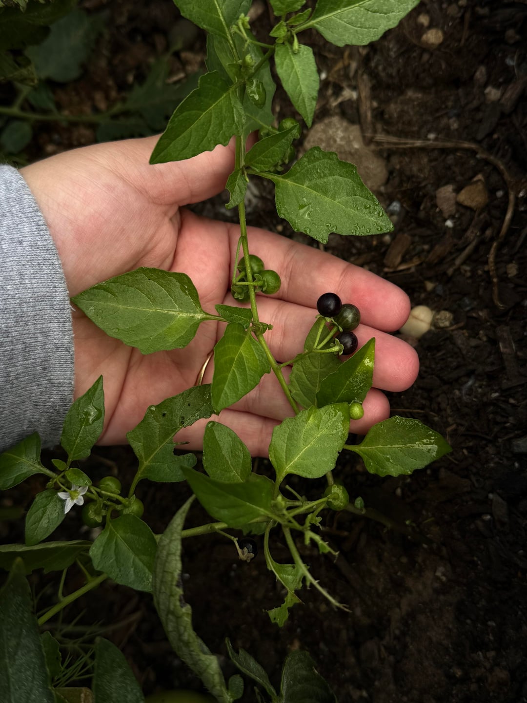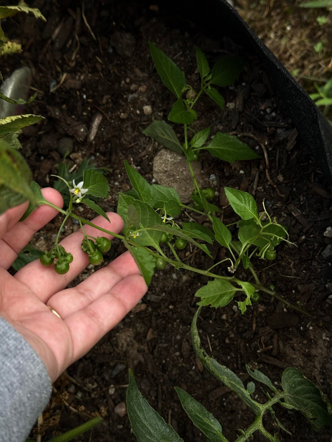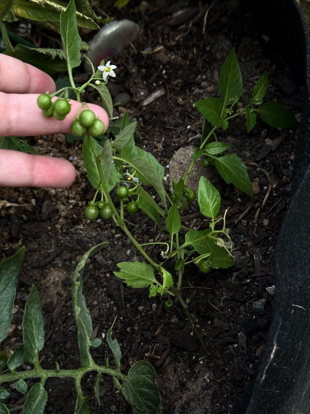 nightshade? i've never seen these before. this is my first year gardening. we have lots of birds so maybe one of them dropped a seed? please help! by InsectNo2519 Dining and Cooking
