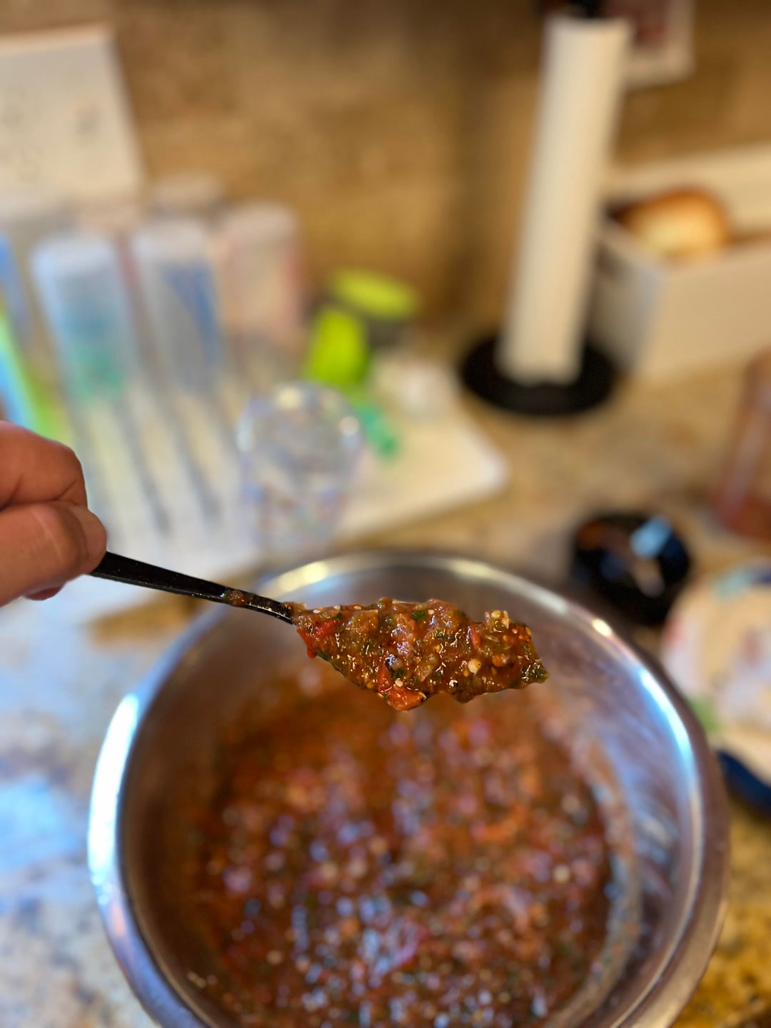 A lotta Tomato’s. 5 cloves Garlic. 1 Onion. 2 tomatillo. 2 jalapeño. 1 habanero. 1 poblano. 1/2 can of chiles in chipotle (not pictured). 1 Lime juiced. 1/2 bunch cilantro. Spicy and delicious. by ROCCOfromTokyo 6 Comments Grich805 2 months ago I see that poblano makes for some good flavor! ggb123456 2 months ago Looks great to me! brickpaul65 2 months ago Standards met! Clear_Quit8181 2 months ago Nailed it GoonKingdom 2 months ago Looks amazing, OP. You’re doing things right! Livid-Departure7363 2 months ago The only standard for your salsa is how much you enjoy it. That said, this looks delicious.